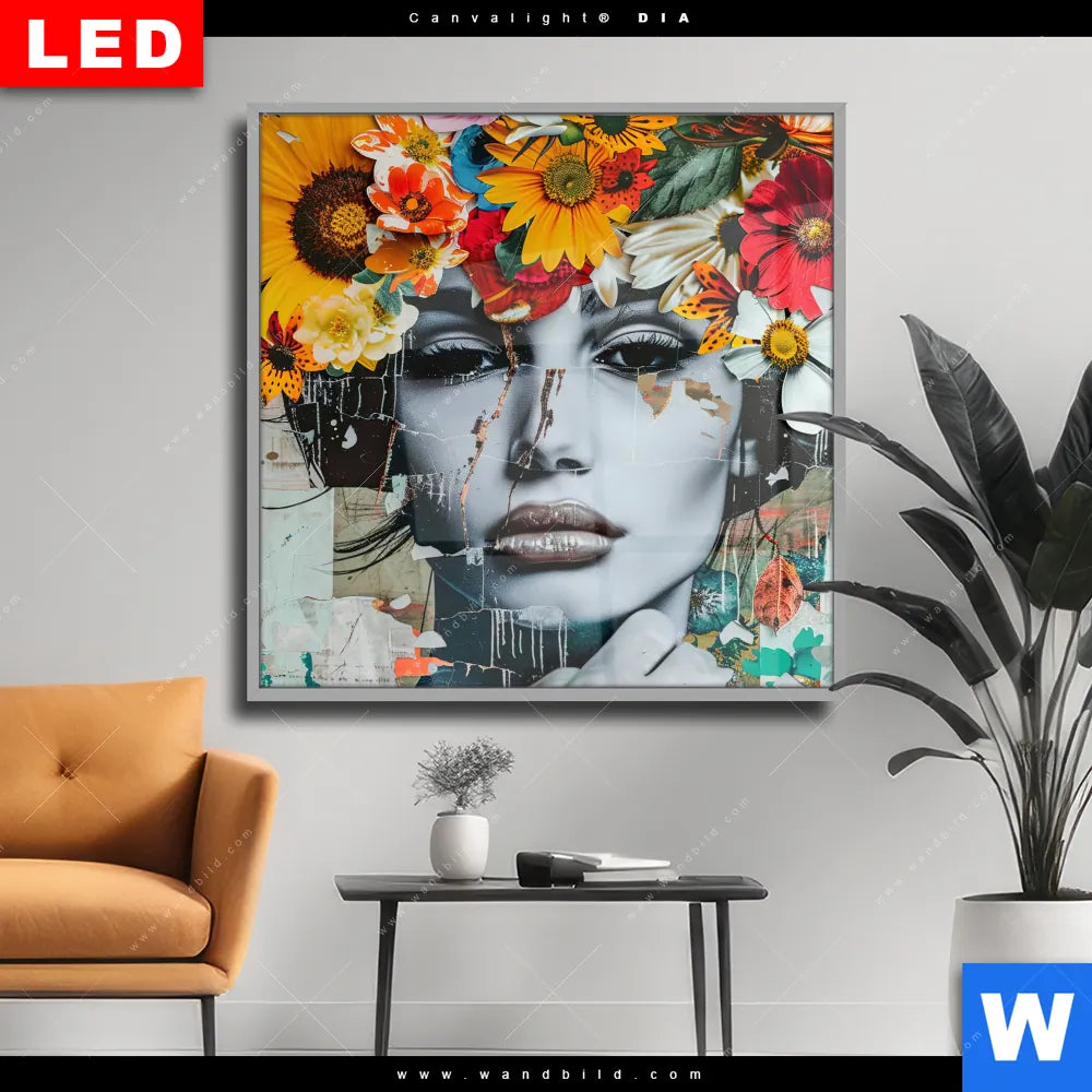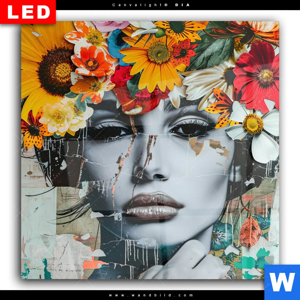 Wechselmotiv Acrylglas Canvalight® DIA | Angelina - Frau mit Blumen im Haar | Quadrat