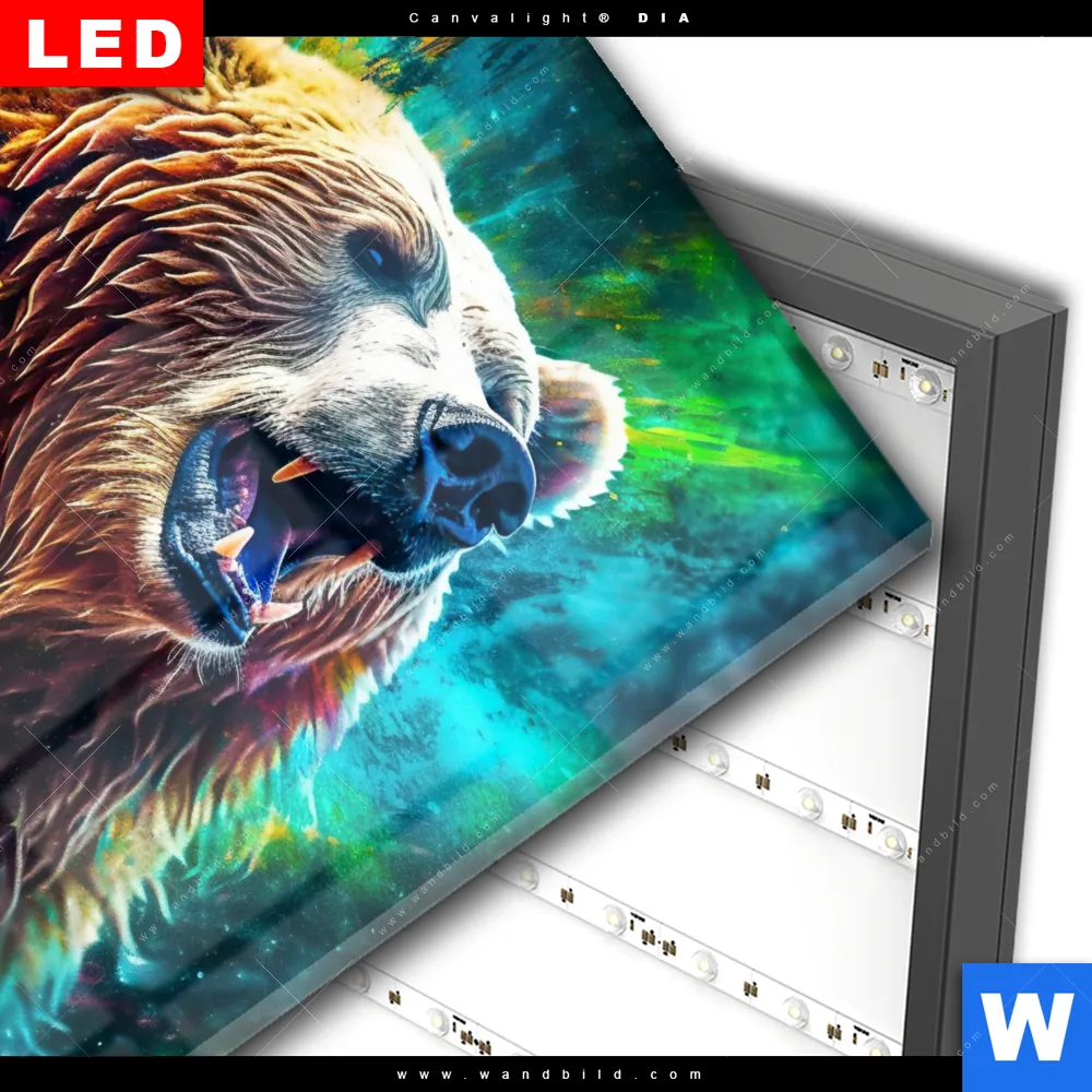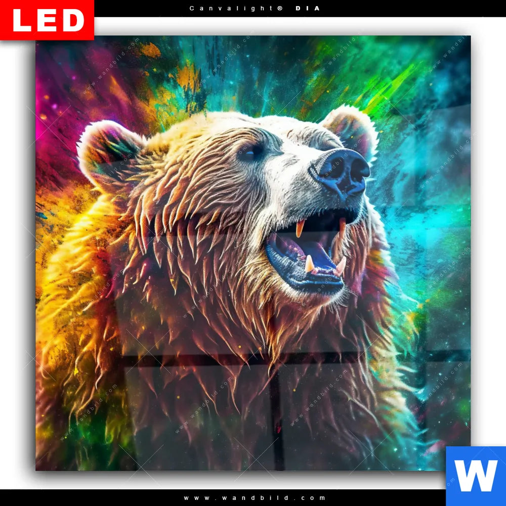 Wechselmotiv Acrylglas Canvalight® DIA | Bär in Neonfarben | Quadrat