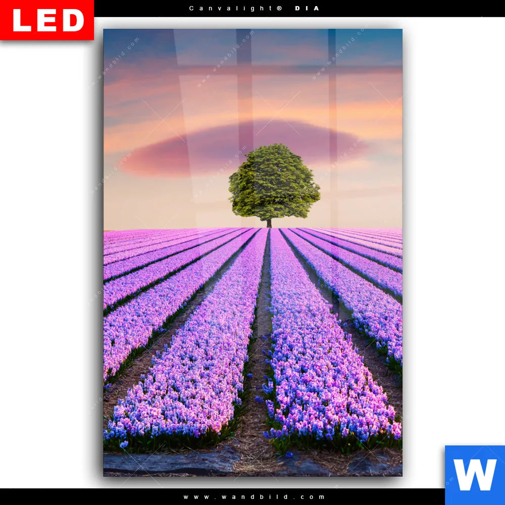 Wechselmotiv Acrylglas Canvalight® DIA | Baum im Blumenfeld | Hochformat
