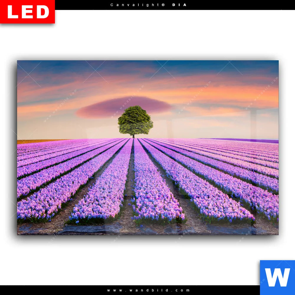Wechselmotiv Acrylglas Canvalight® DIA | Baum im Blumenfeld | Querformat
