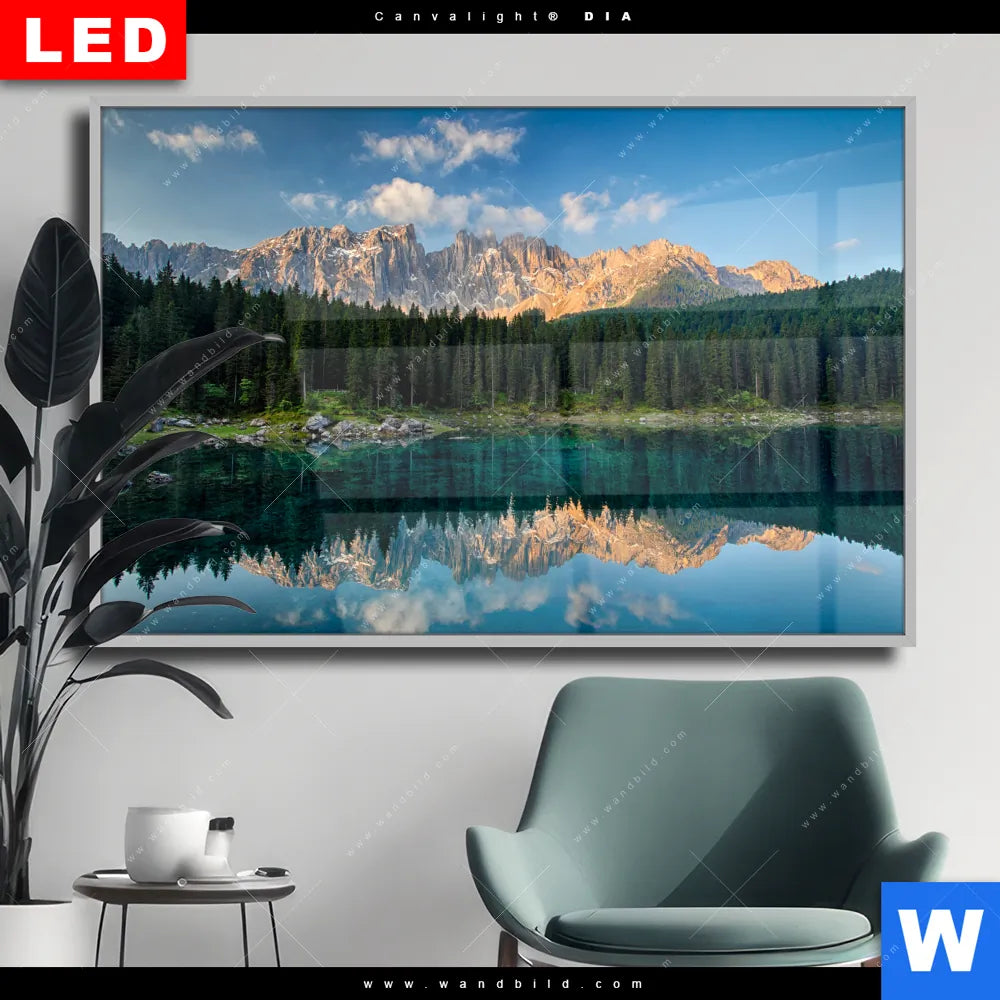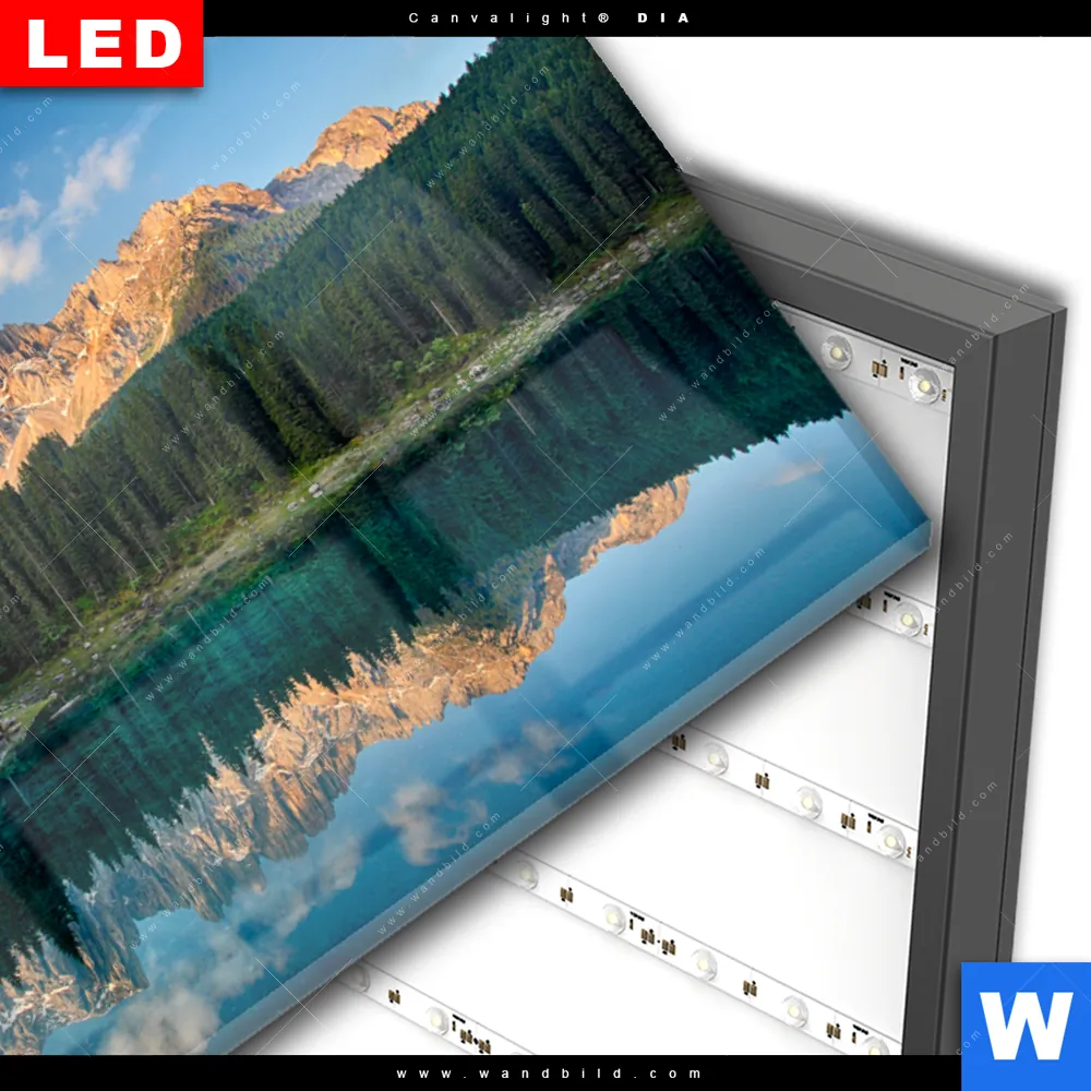 Wechselmotiv Acrylglas Canvalight® DIA | Bergsee im Wald | Querformat