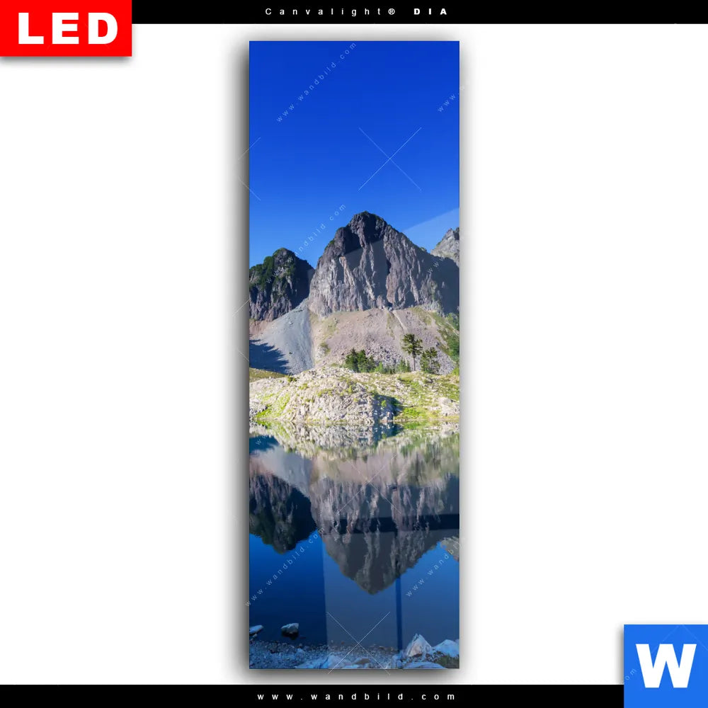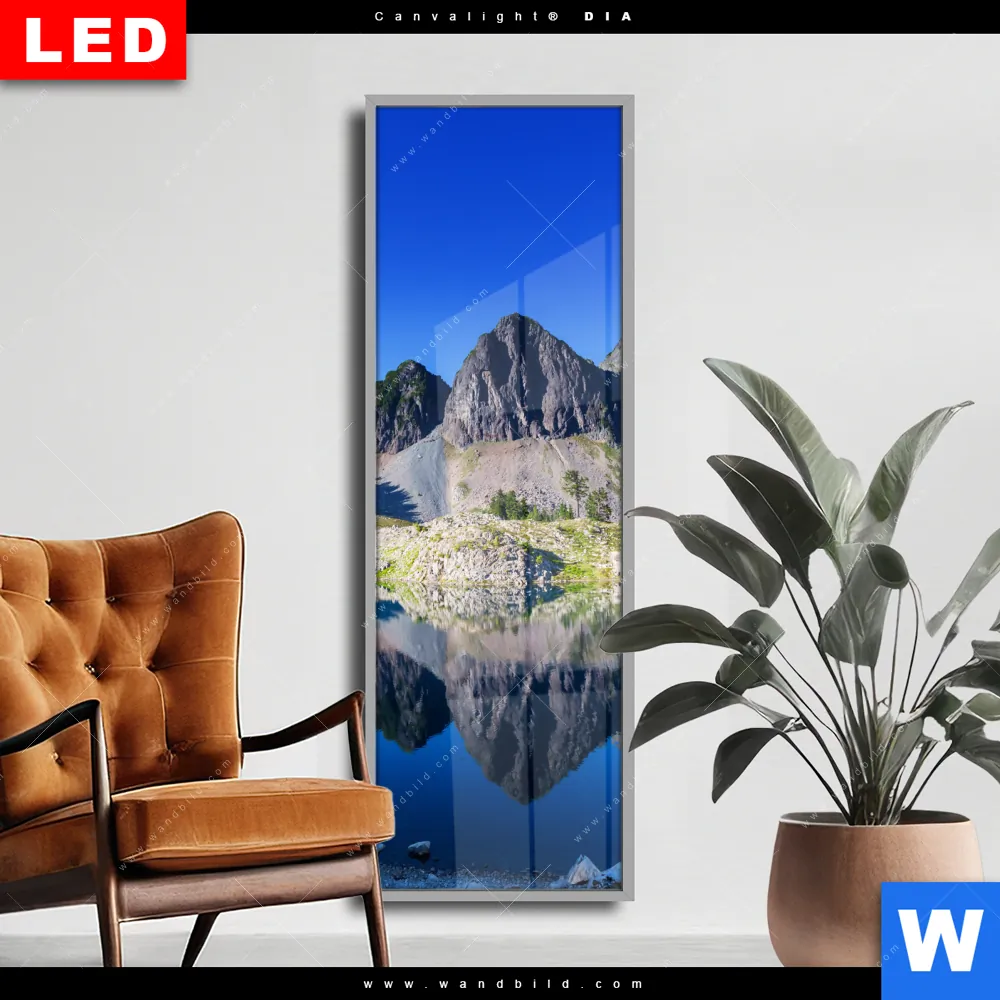Wechselmotiv Acrylglas Canvalight® DIA | Bergsee in Amerika | Schmal