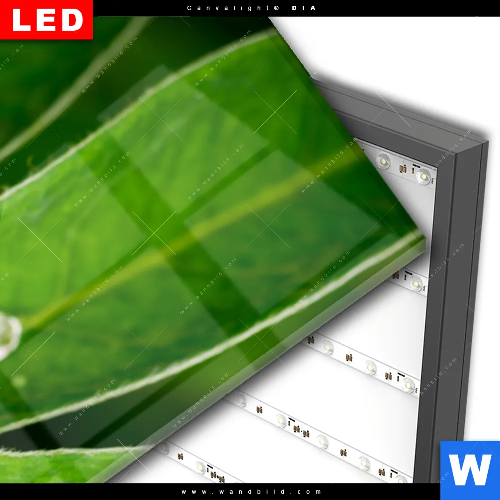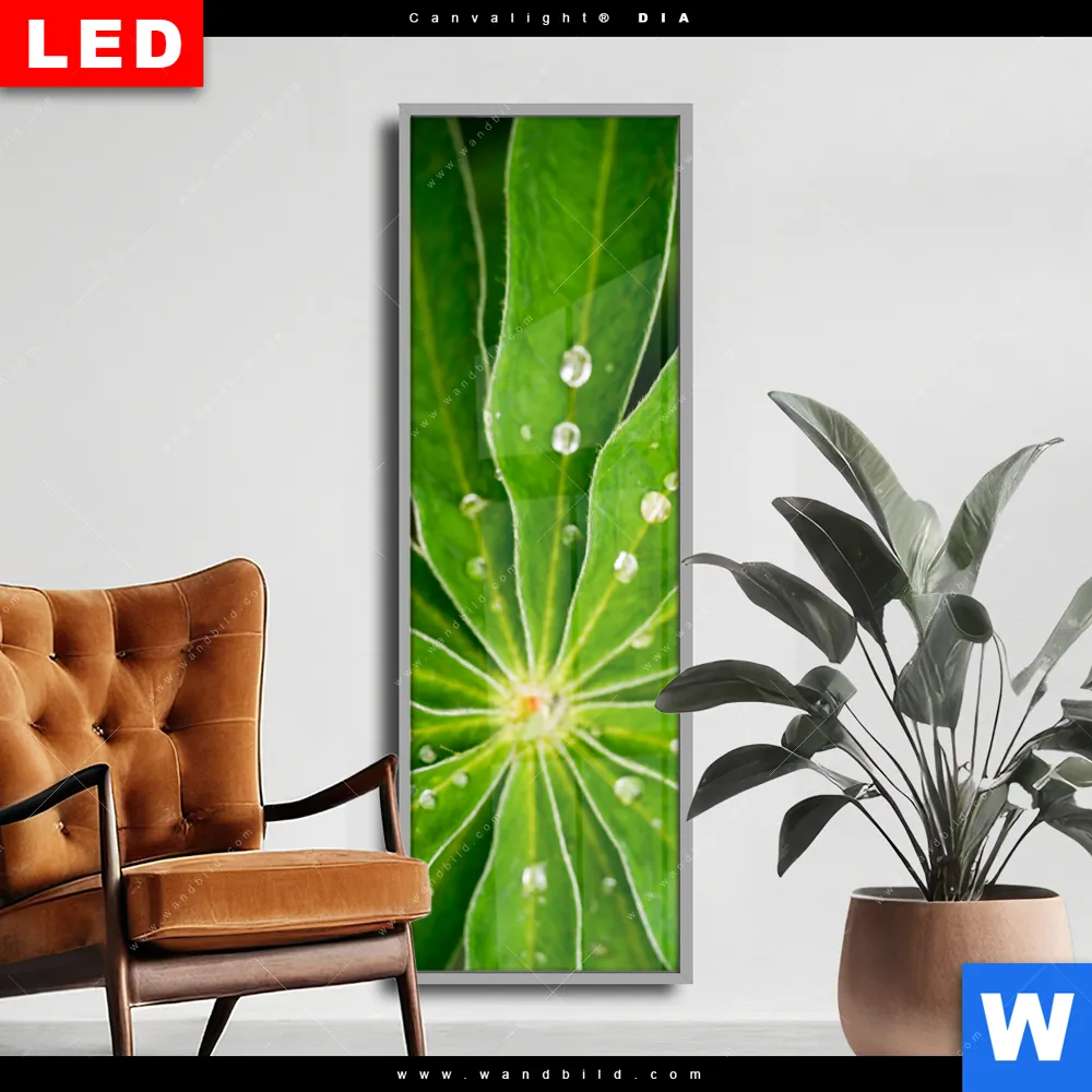 Wechselmotiv Acrylglas Canvalight® DIA | Blatt mit Wassertropfen | Schmal
