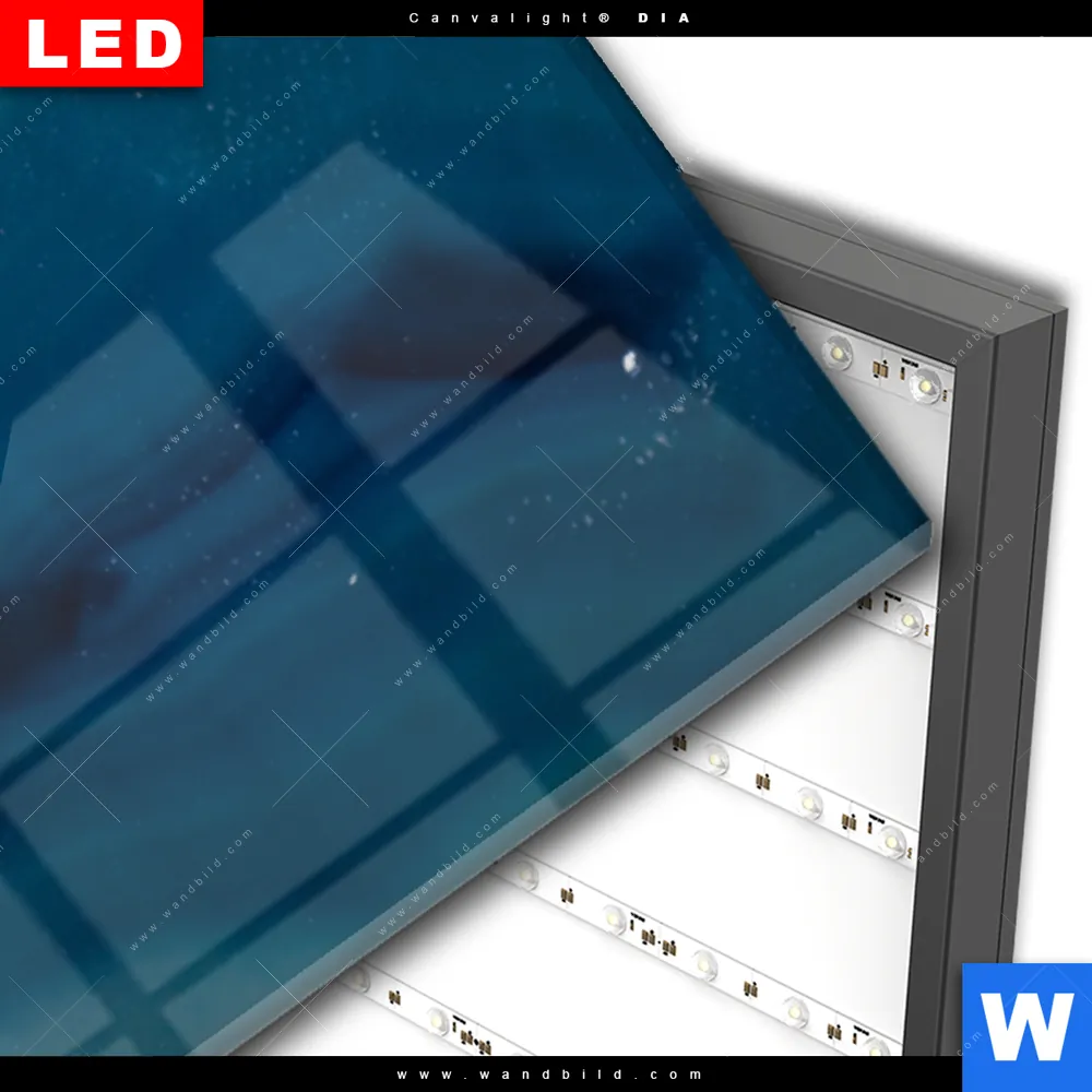 BEACHTE: Du solltest bereits ein Canvalight® DIA Leuchtbild mit austauschbarem Acrylglas-Motiv besitzen! Im Lieferumfang ist nur ein Wechsel-Acrylglas-Druck ohne Leuchtrahmen enthalten. Der Abdeckwinkel im Frontbereich des LED Bildes deckt umlaufend ca. 19 mm des Motives ab. Bei eigenen Motiven bitte darauf achten, wichtige Elemente in ausreichender Entfernung vom Rand zu platzieren, damit diese nicht verdeckt werden.