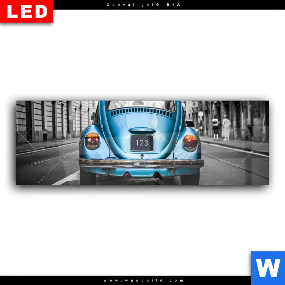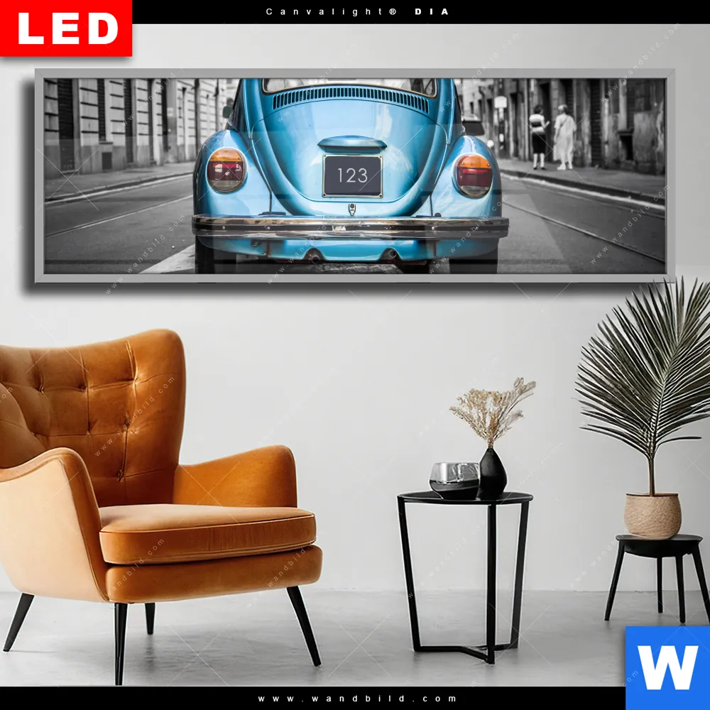 Wechselmotiv Acrylglas Canvalight® DIA | Blauer Oldtimer | Panorama
