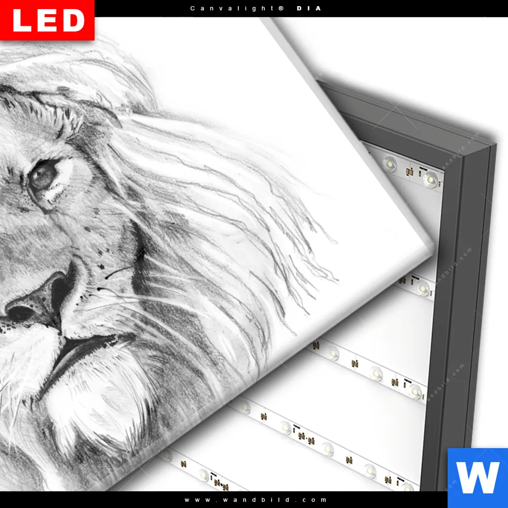 Wechselmotiv Acrylglas Canvalight® DIA | Bleistiftzeichnung Löwe | Querformat