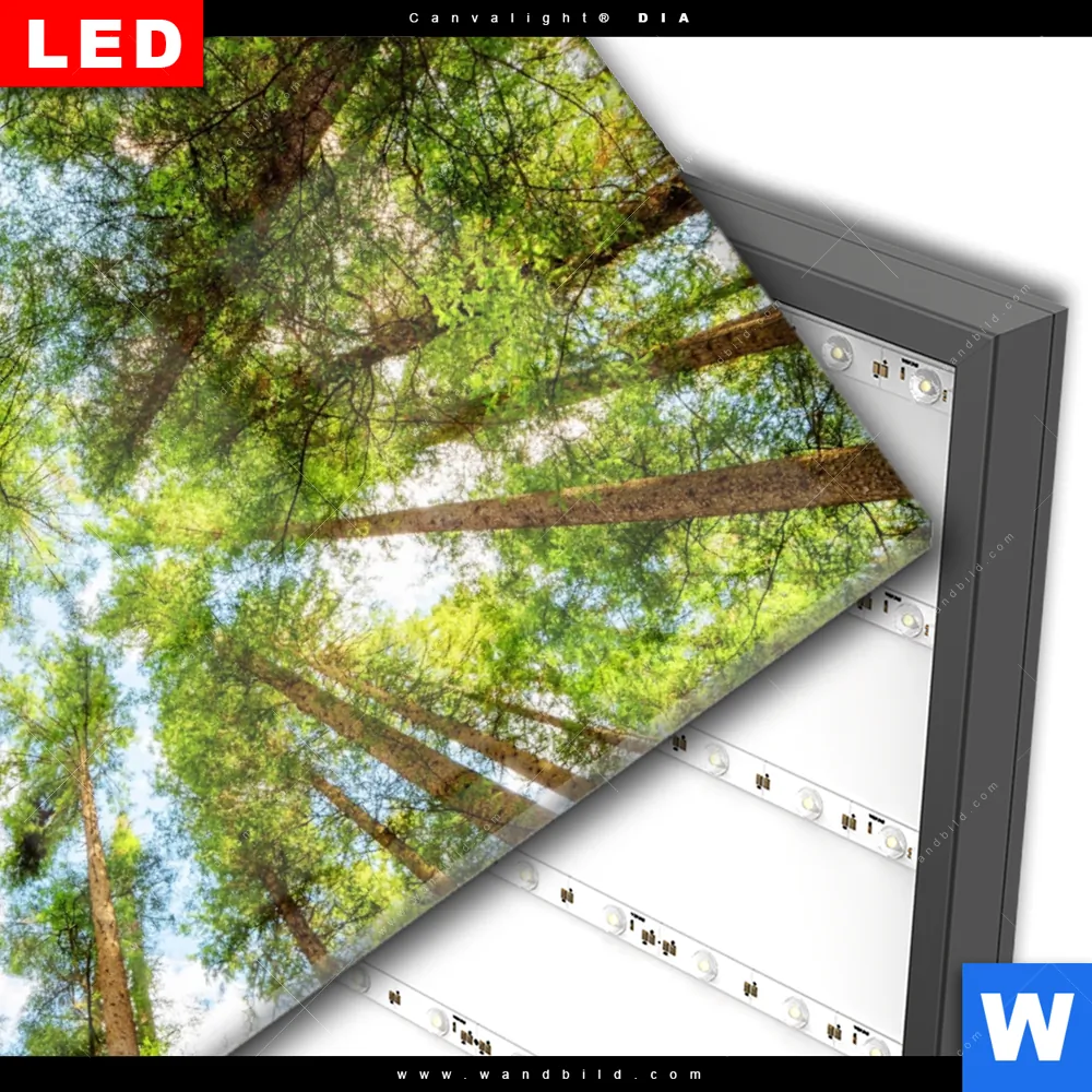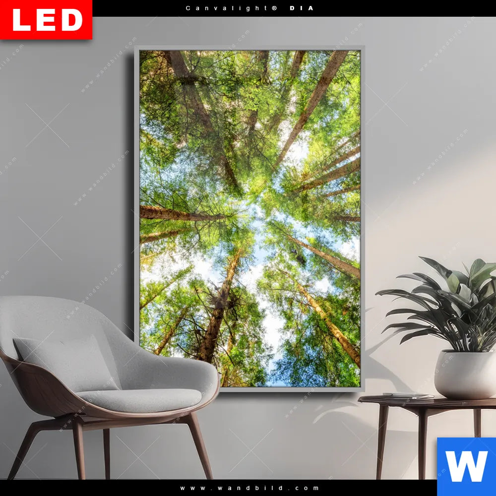 Wechselmotiv Acrylglas Canvalight® DIA | Blick in Baumkronen | Hochformat