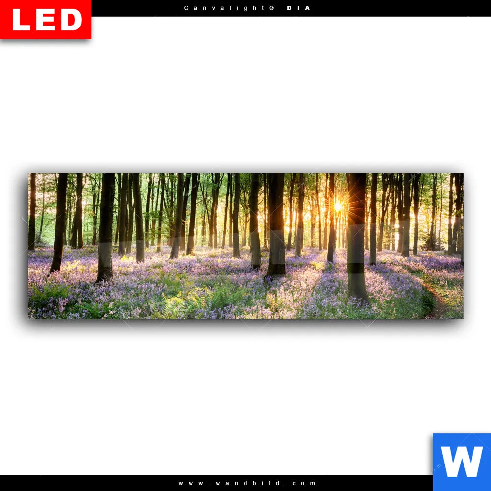 Wechselmotiv Acrylglas Canvalight® DIA | Blühender Wald bei Sonnenaufgang | Panorama