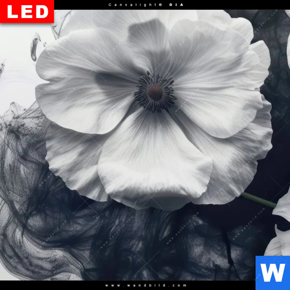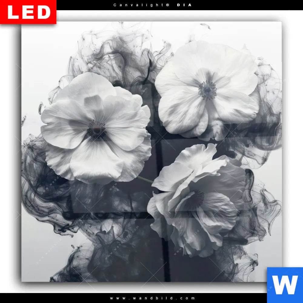 Wechselmotiv Acrylglas Canvalight® DIA | Blumen im schwarzen Farbnebel | Quadrat