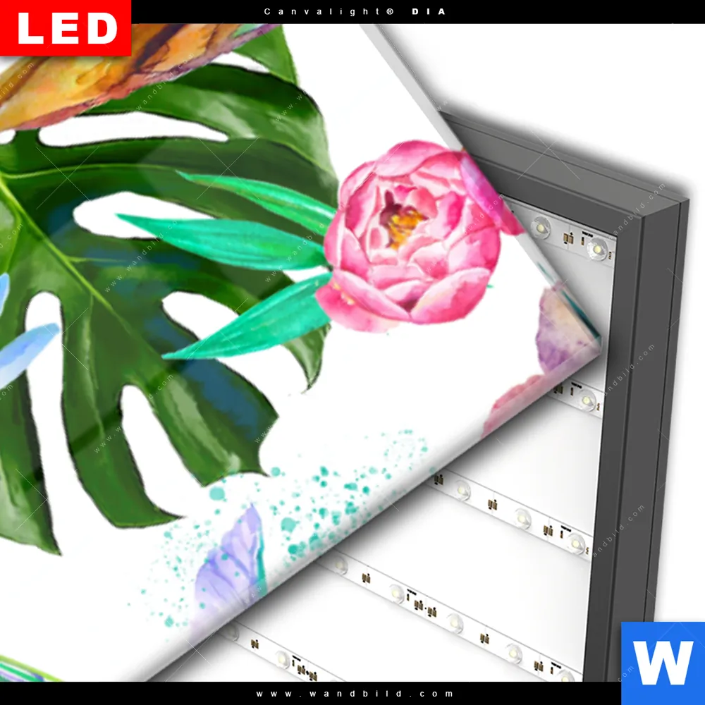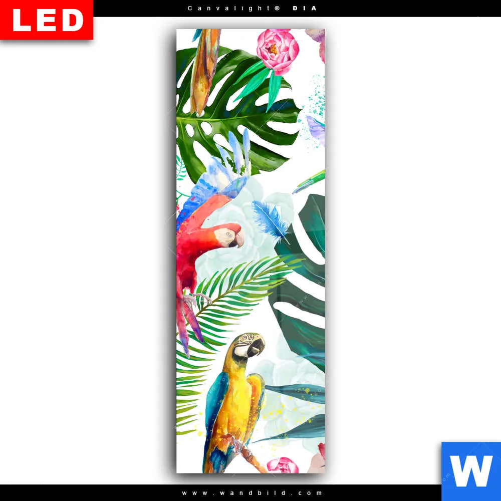 Wechselmotiv Acrylglas Canvalight® DIA | Blumen & Papageien Aquarell | Schmal