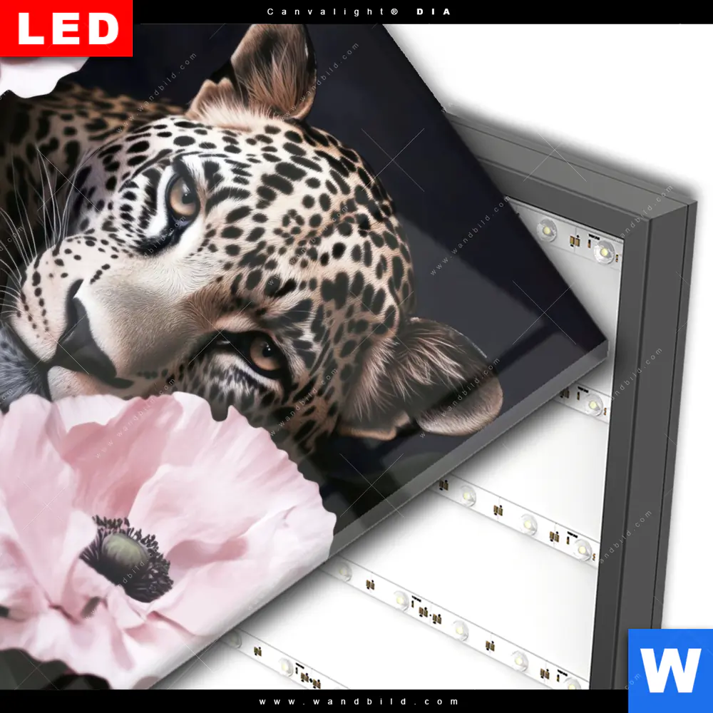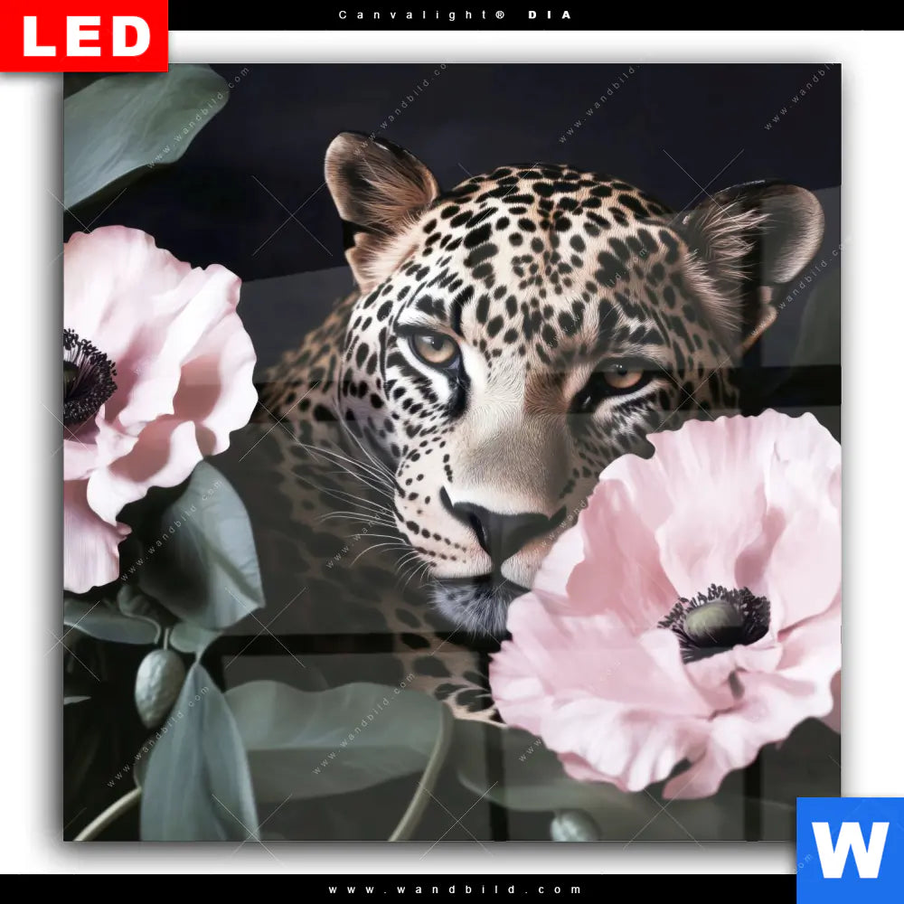 Wechselmotiv Acrylglas Canvalight® DIA | Blumen und Raubkatzenmagie | Quadrat