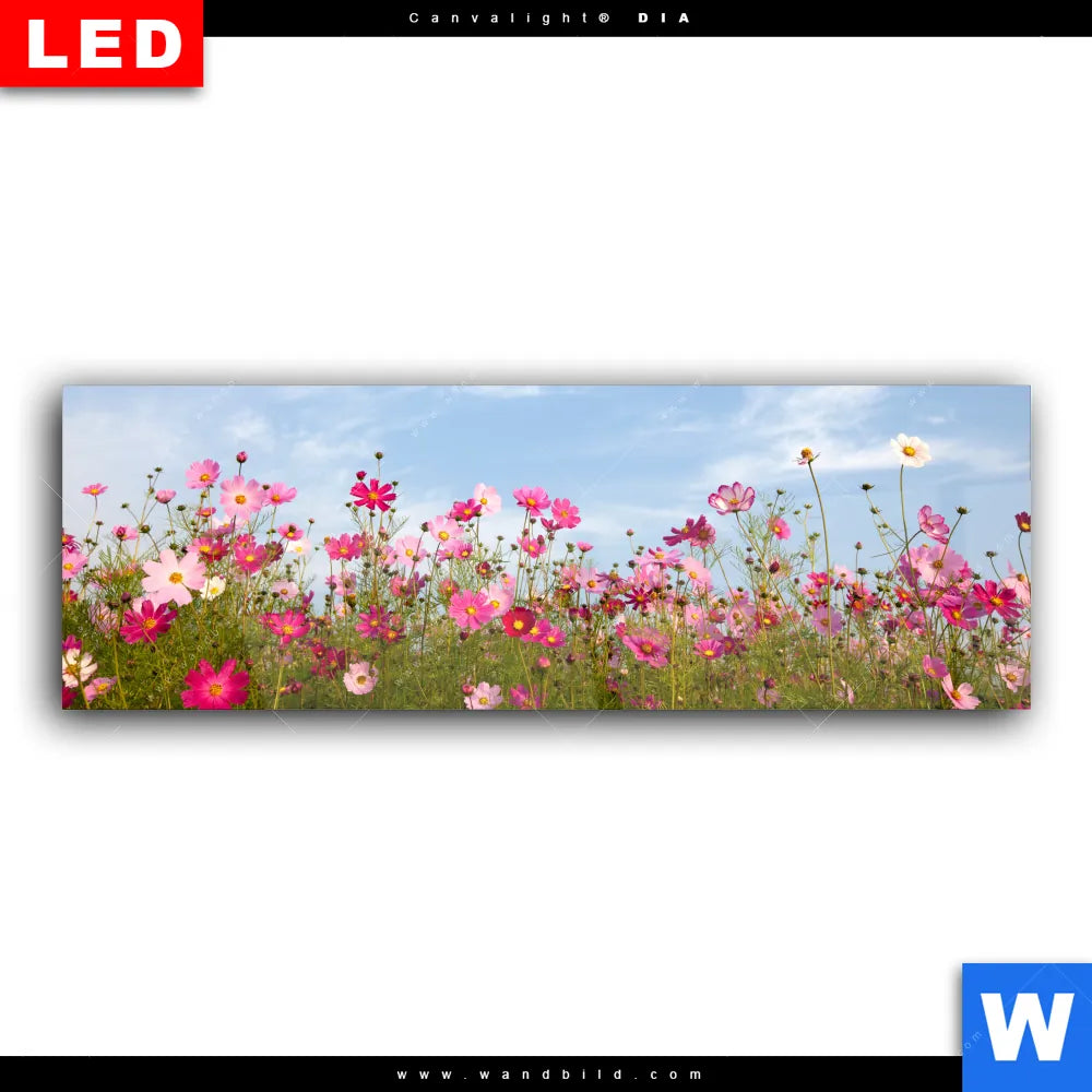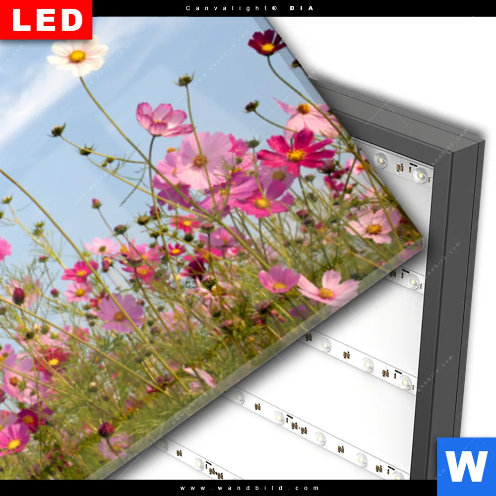 Wechselmotiv Acrylglas Canvalight® DIA | Blumenwiese bei strahlend blauem Himmel | Panorama