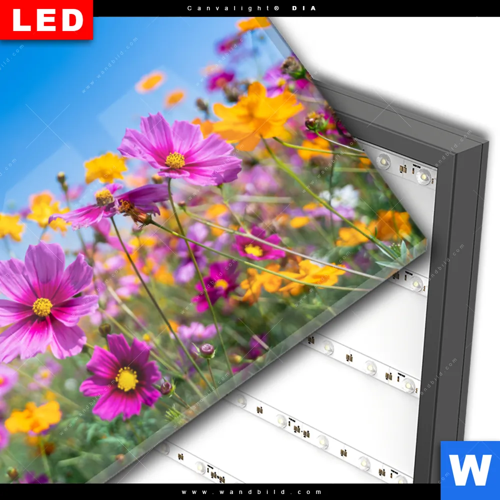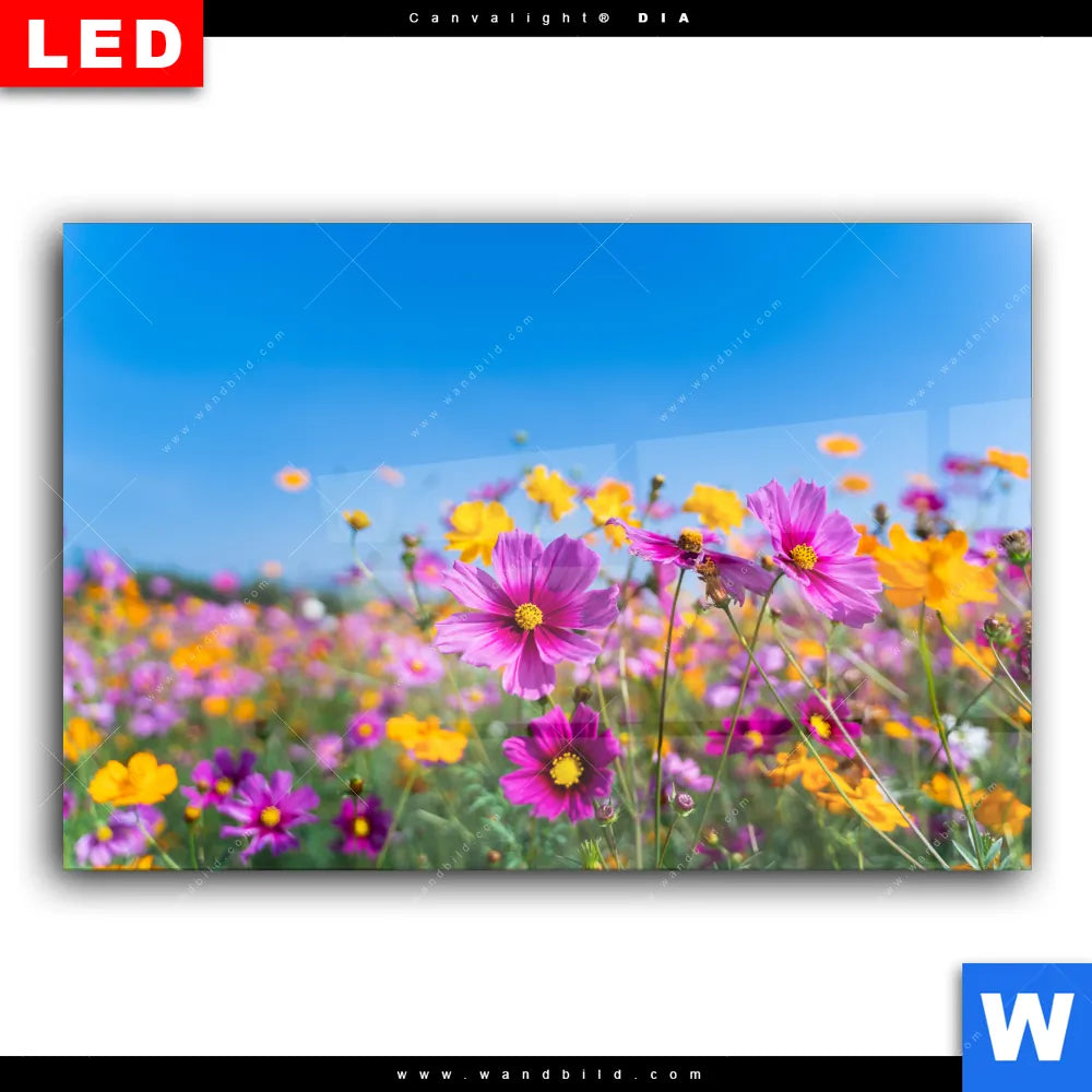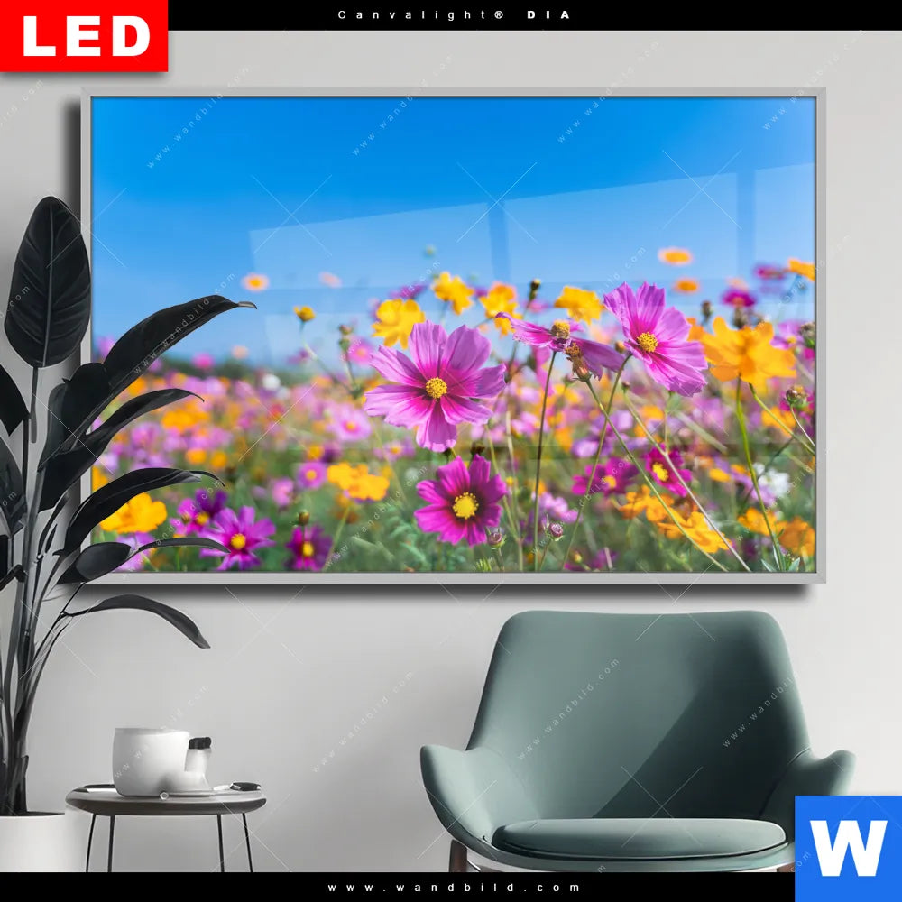 Wechselmotiv Acrylglas Canvalight® DIA | Blumenwiese unter blauem Himmel | Querformat