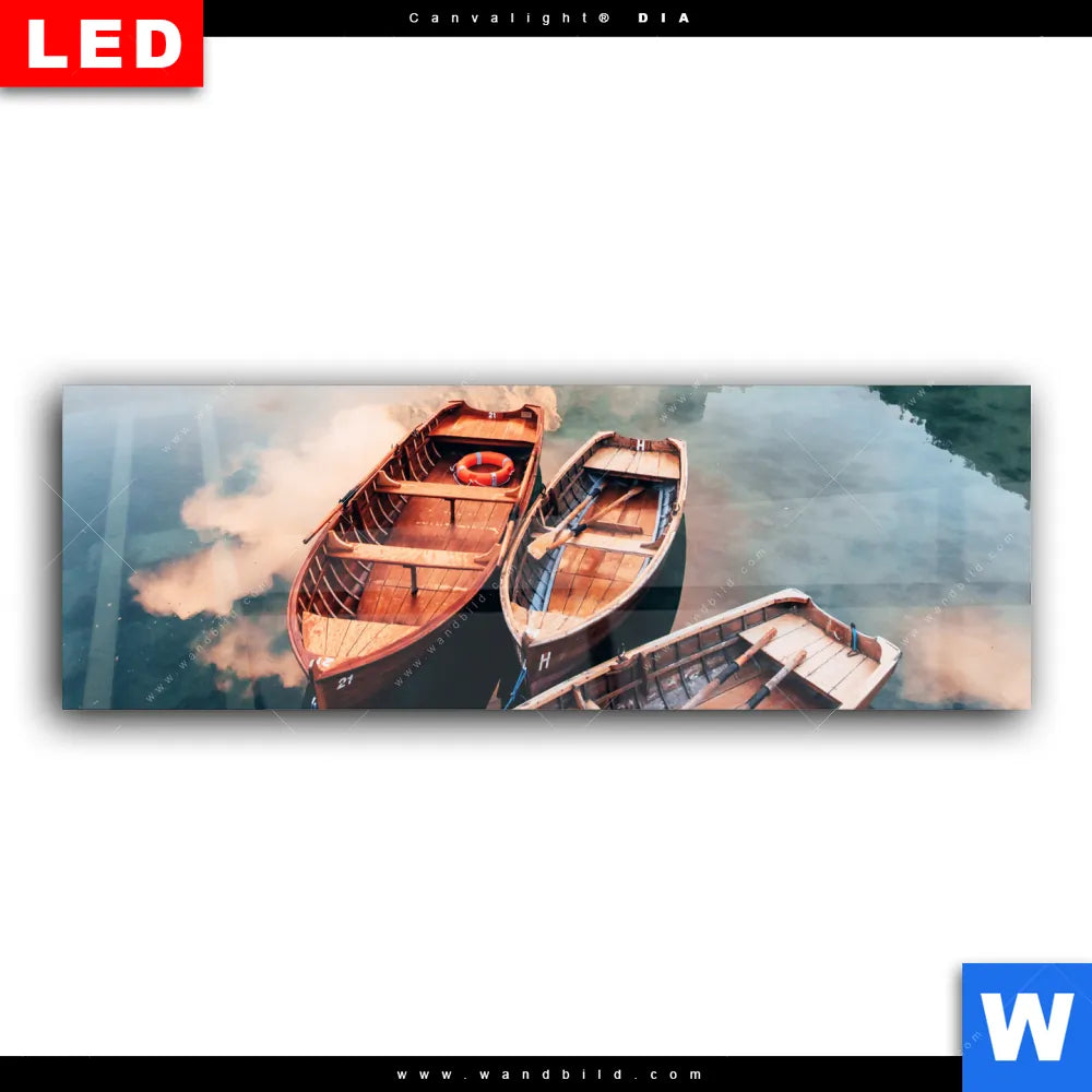 Wechselmotiv Acrylglas Canvalight® DIA | Boote im Bergsee | Panorama