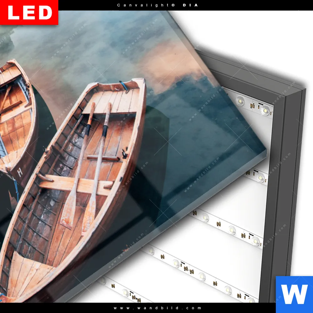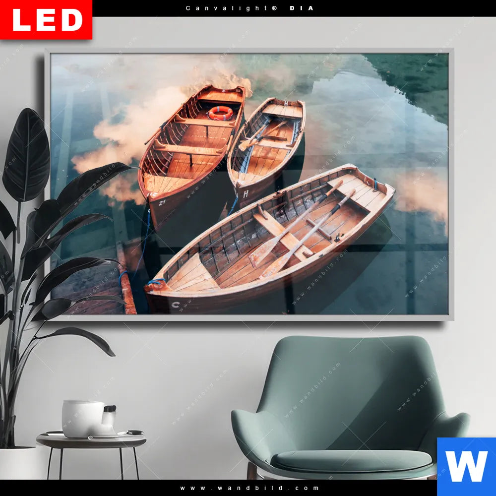 Wechselmotiv Acrylglas Canvalight® DIA | Boote im Bergsee | Querformat