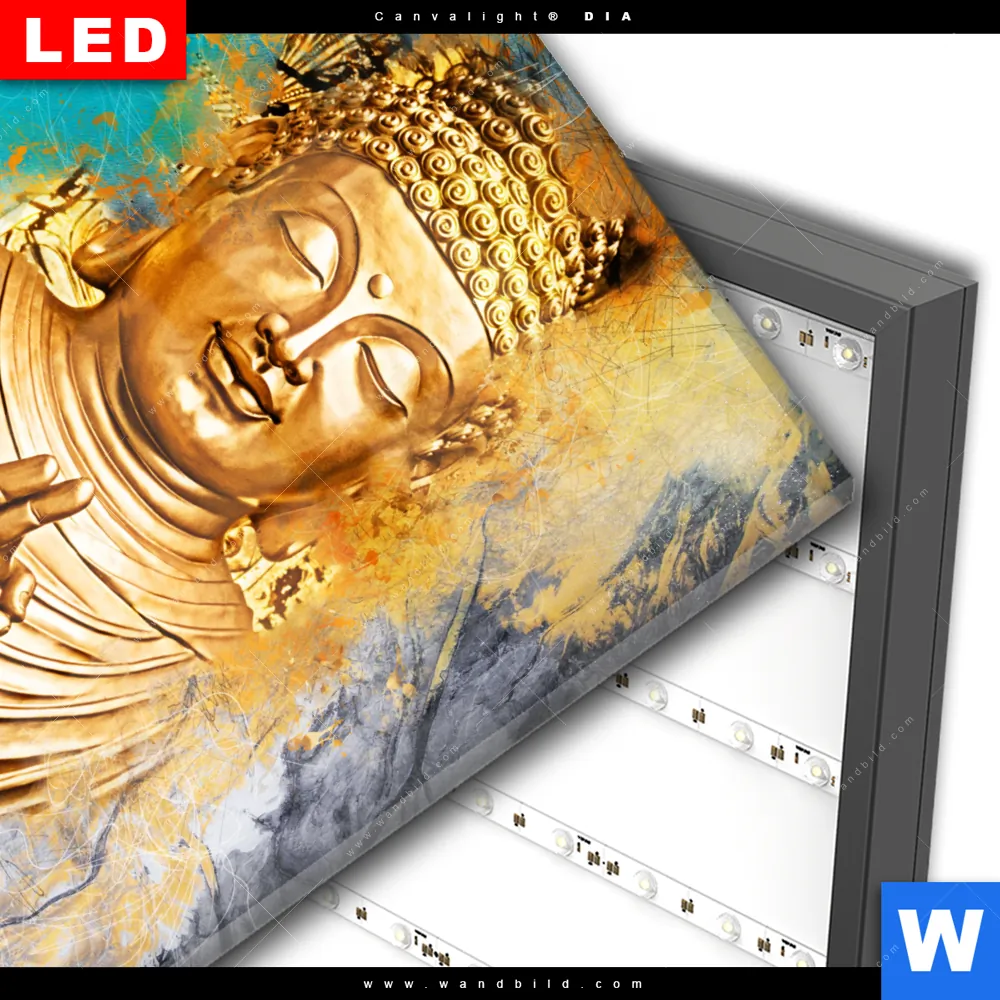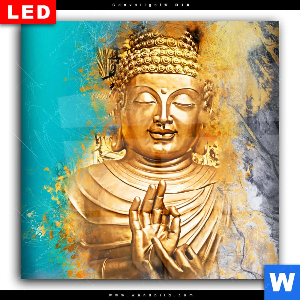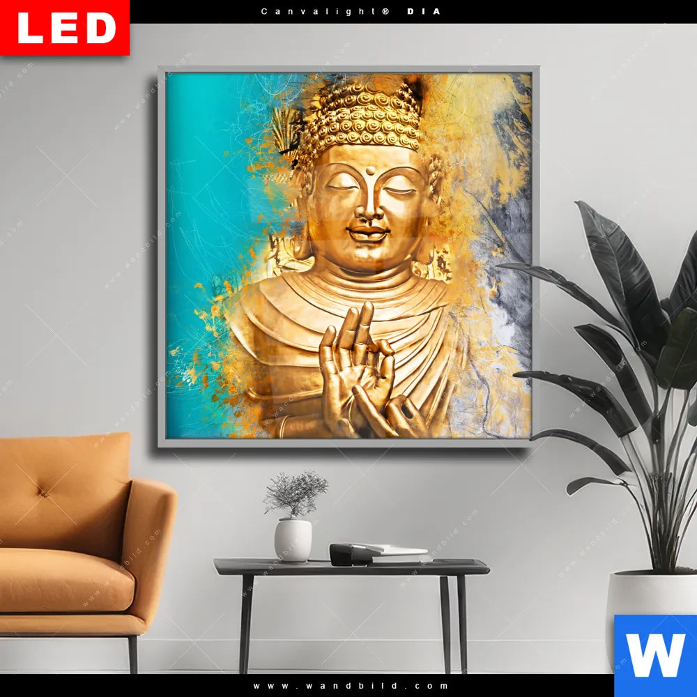 Wechselmotiv Acrylglas Canvalight® DIA | Buddha Gold & Türkis | Quadrat