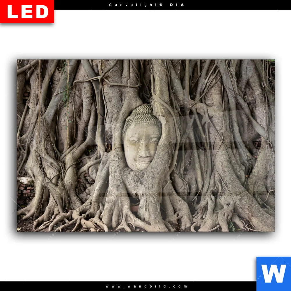 Wechselmotiv Acrylglas Canvalight® DIA | Buddha in Baumwurzeln | Querformat