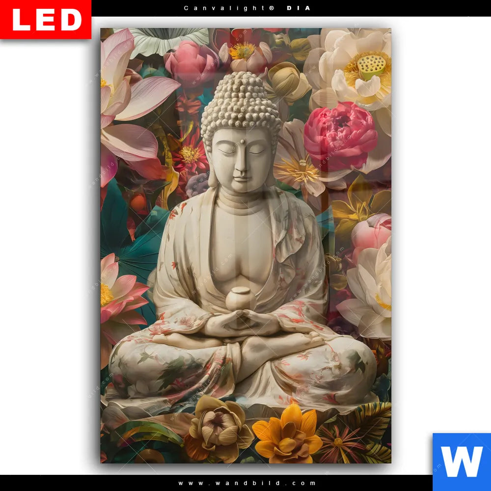 Wechselmotiv Acrylglas Canvalight® DIA | Buddha in farbenfrohen Blumen | Hochformat
