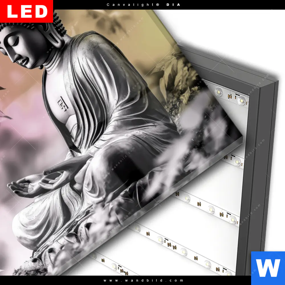 Wechselmotiv Acrylglas Canvalight® DIA | Buddha in stiller Harmonie | Querformat