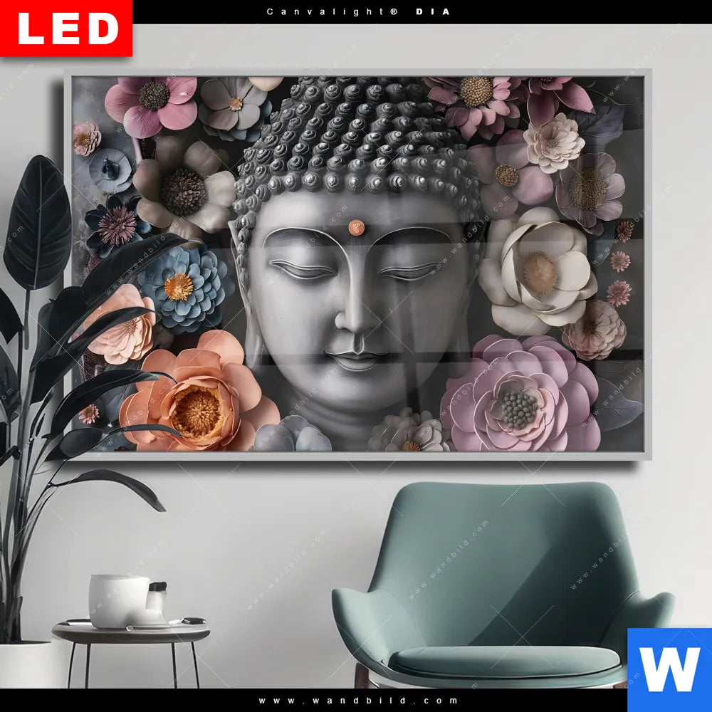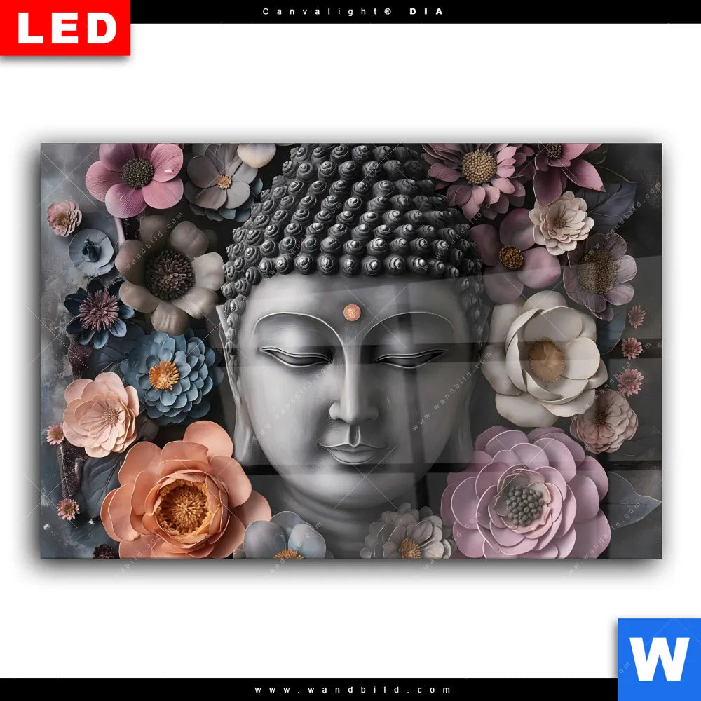 Wechselmotiv Acrylglas Canvalight® DIA | Buddha-Kunst mit Pastellblüten | Querformat