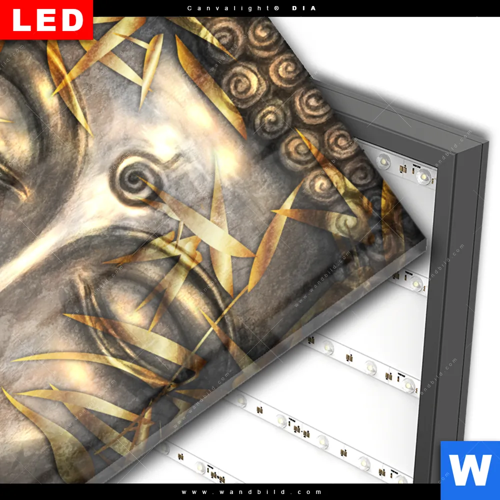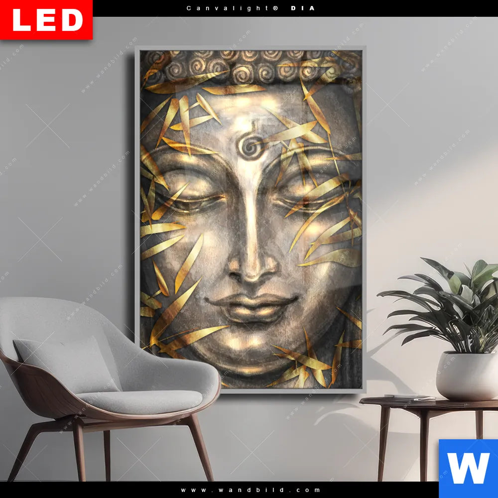 Wechselmotiv Acrylglas Canvalight® DIA | Buddha Silber & Gold | Hochformat