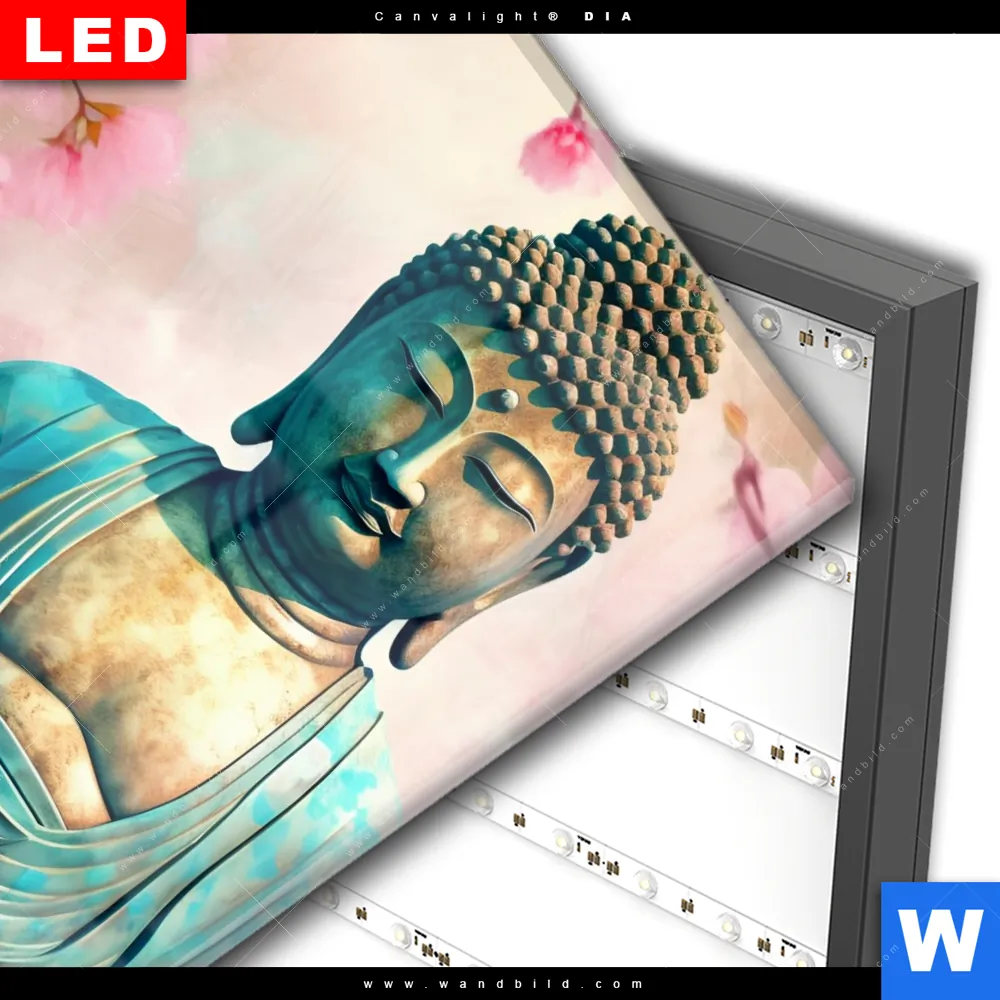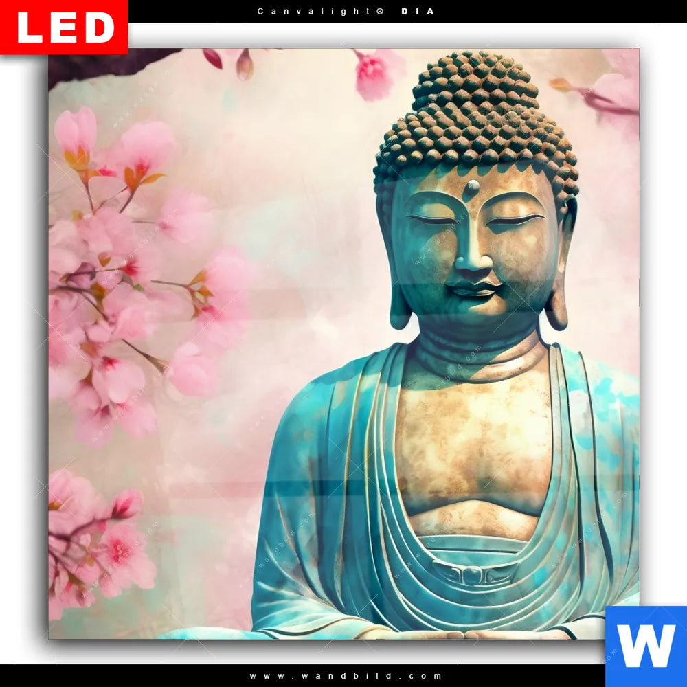 Wechselmotiv Acrylglas Canvalight® DIA | Buddha Statue mit Kirschblüten | Quadrat