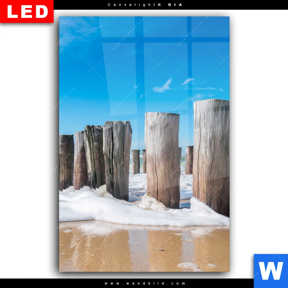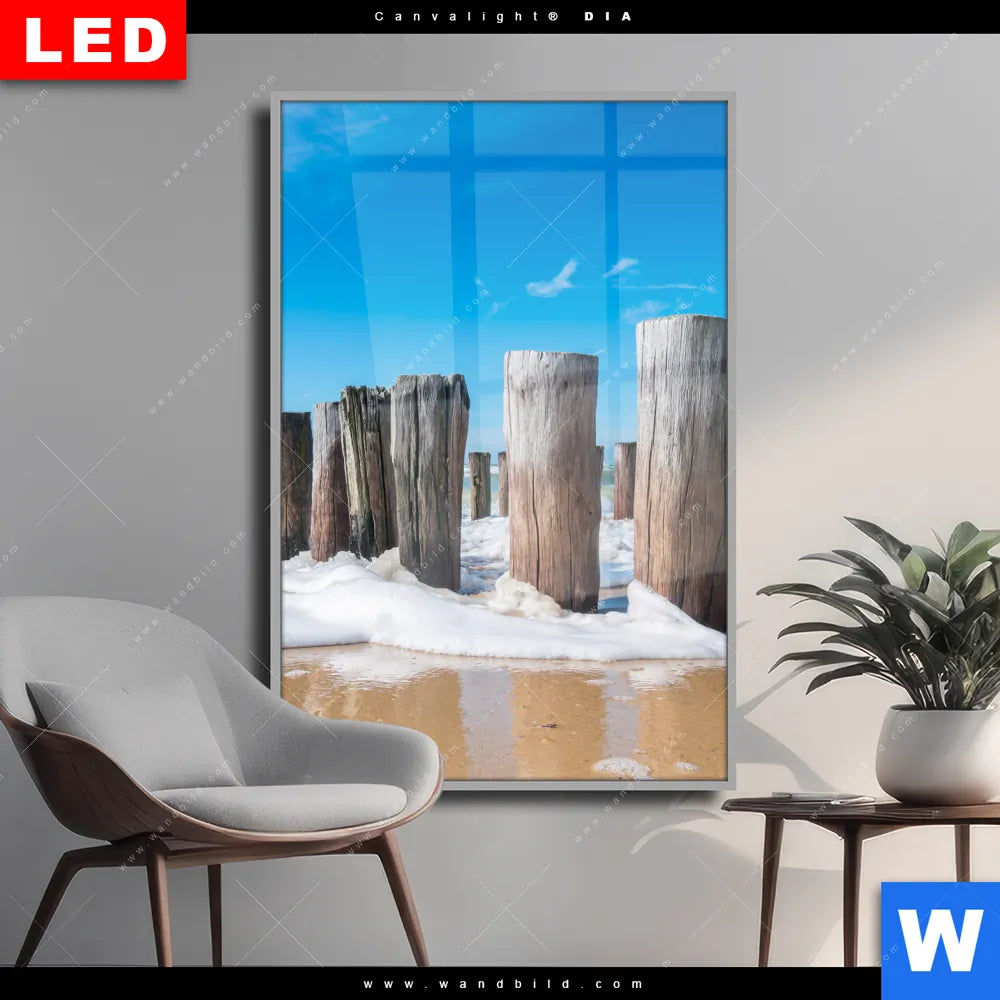 Wechselmotiv Acrylglas Canvalight® DIA | Buhnen in Wellen am Strand | Hochformat
