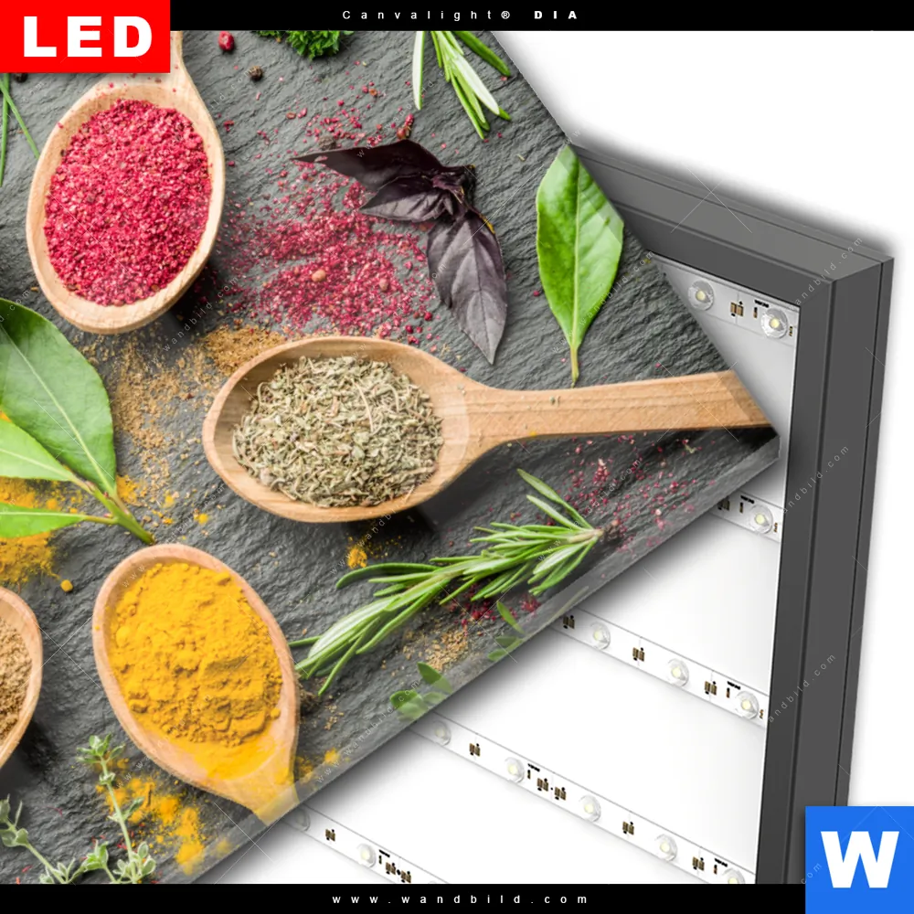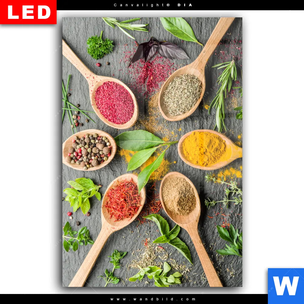 Wechselmotiv Acrylglas Canvalight® DIA | Bunte Gewürze in Holzlöffeln | Hochformat