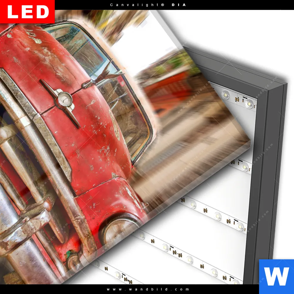 Wechselmotiv Acrylglas Canvalight® DIA | Bunte vintage Oldtimer | Quadrat