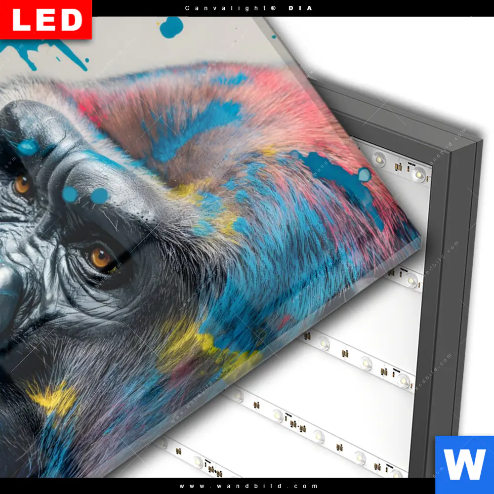 Wechselmotiv Acrylglas Canvalight® DIA | Bunter Gorilla mit Farbspritzern | Hochformat
