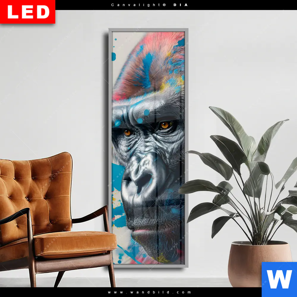 Wechselmotiv Acrylglas Canvalight® DIA | Bunter Gorilla mit Farbspritzern | Schmal