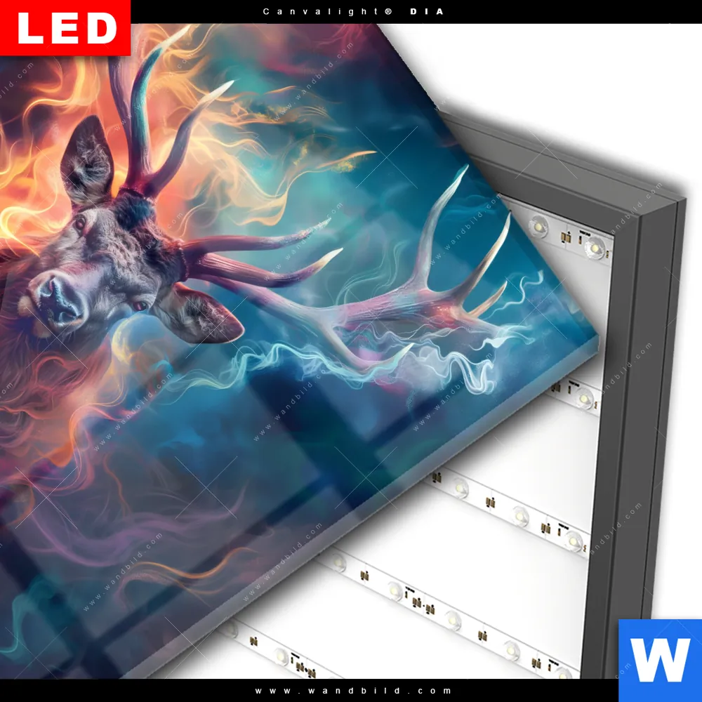 Wechselmotiv Acrylglas Canvalight® DIA | Bunter Hirsch in Flammen | Quadrat