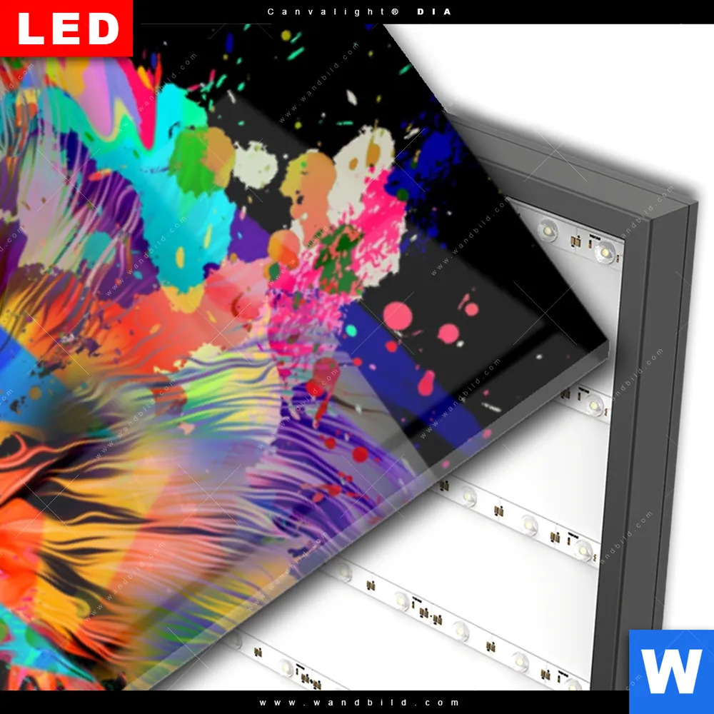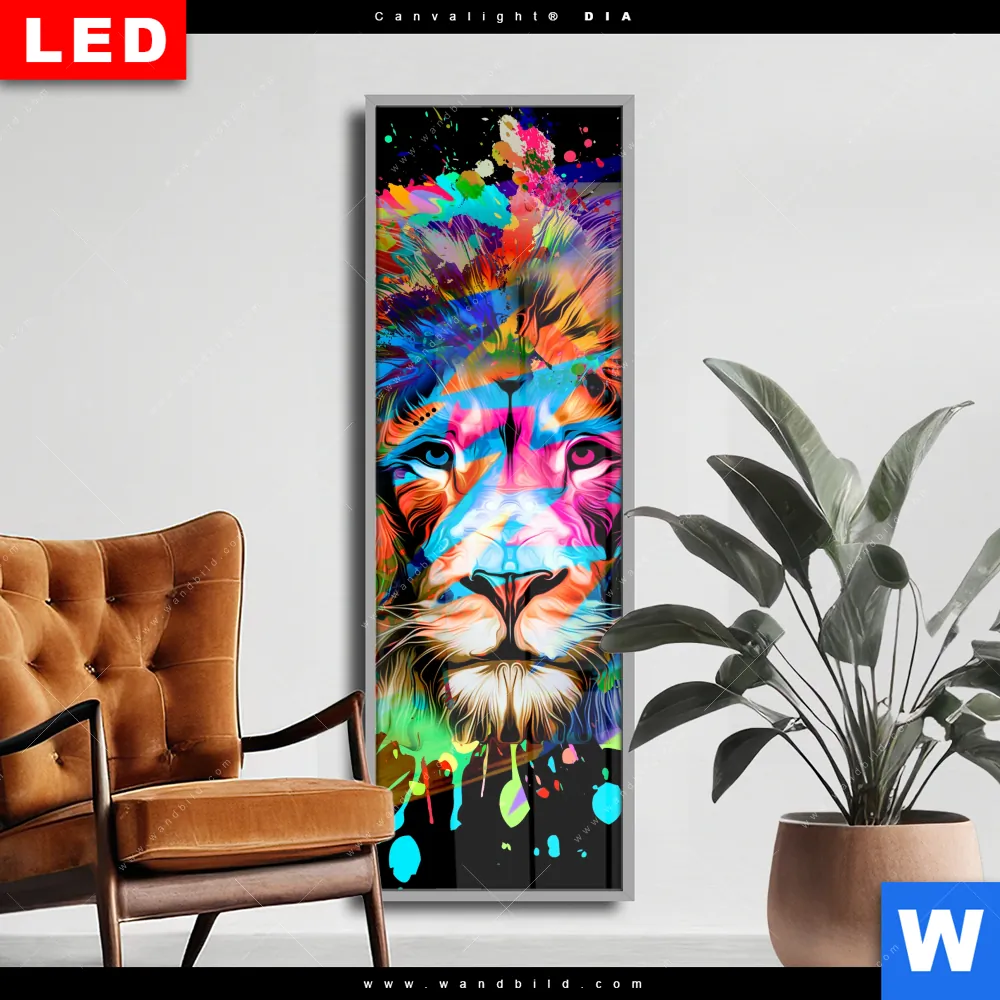Wechselmotiv Acrylglas Canvalight® DIA | Bunter Löwe Schwarz | Schmal