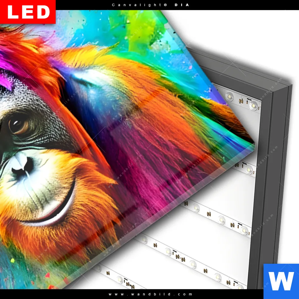 Wechselmotiv Acrylglas Canvalight® DIA | Bunter Orang-Utan | Querformat