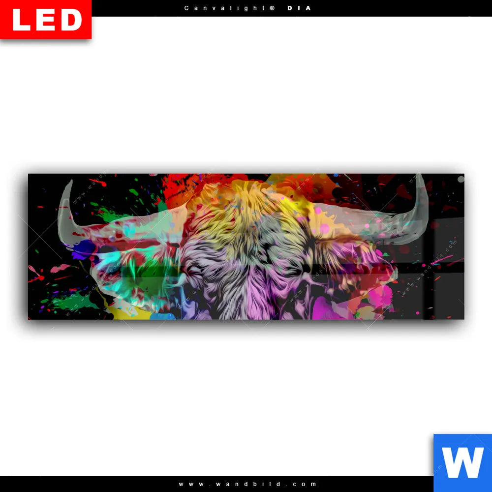 Wechselmotiv Acrylglas Canvalight® DIA | Bunter Stier Schwarz | Panorama