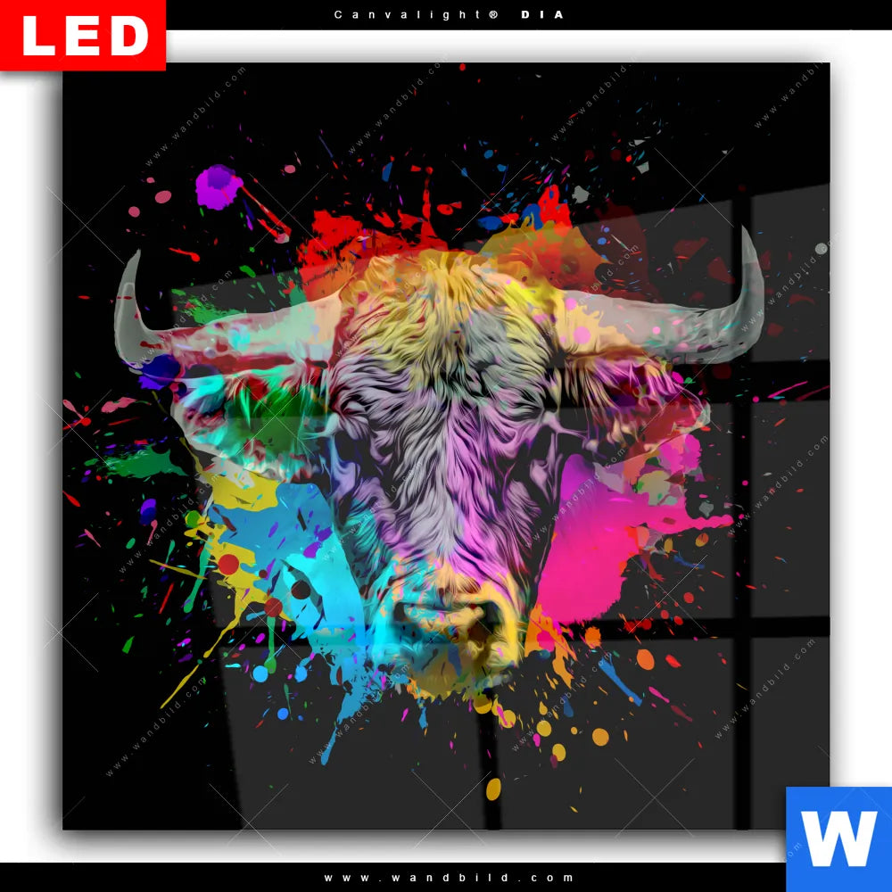 Wechselmotiv Acrylglas Canvalight® DIA | Bunter Stier Schwarz | Quadrat