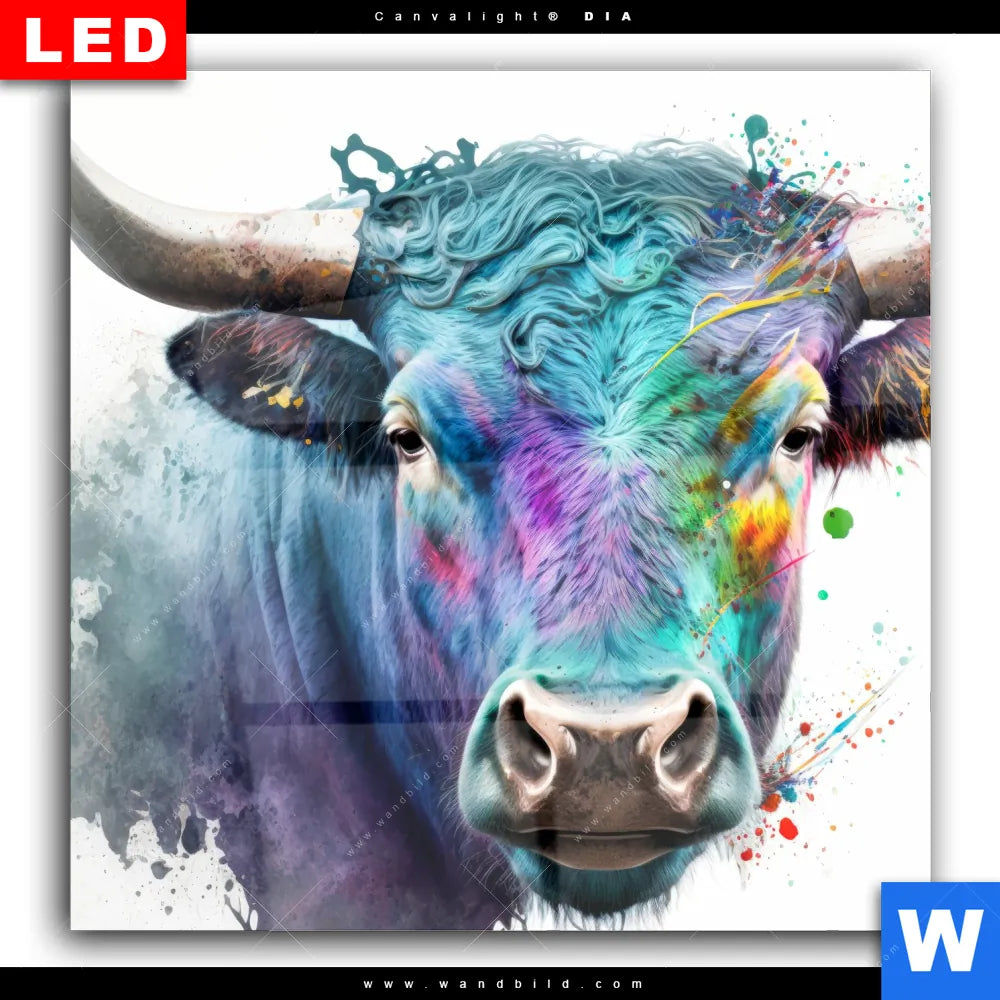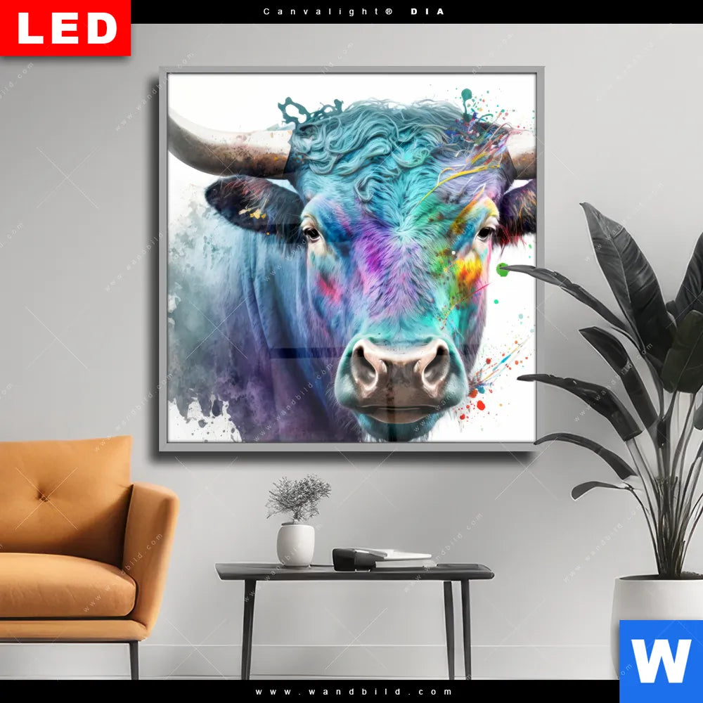 Wechselmotiv Acrylglas Canvalight® DIA | Bunter Stierkopf | Quadrat