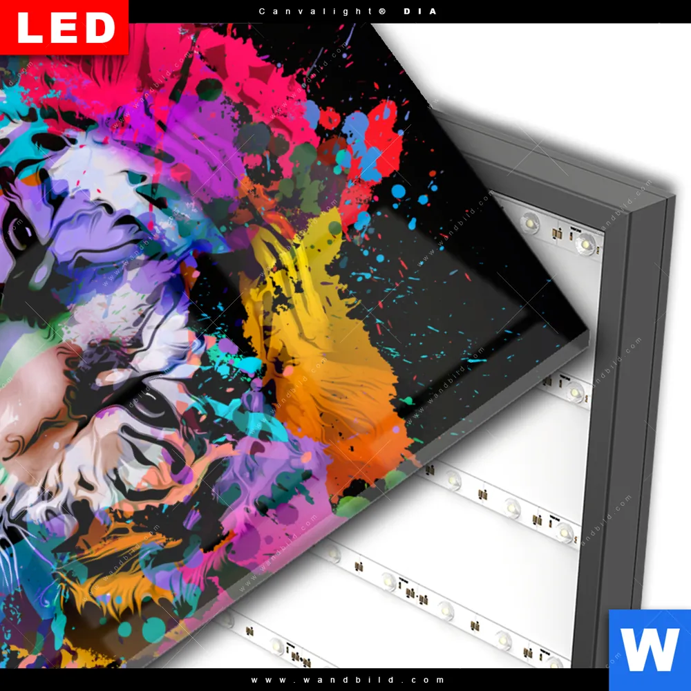 Wechselmotiv Acrylglas Canvalight® DIA | Bunter Tiger Schwarz | Hochformat