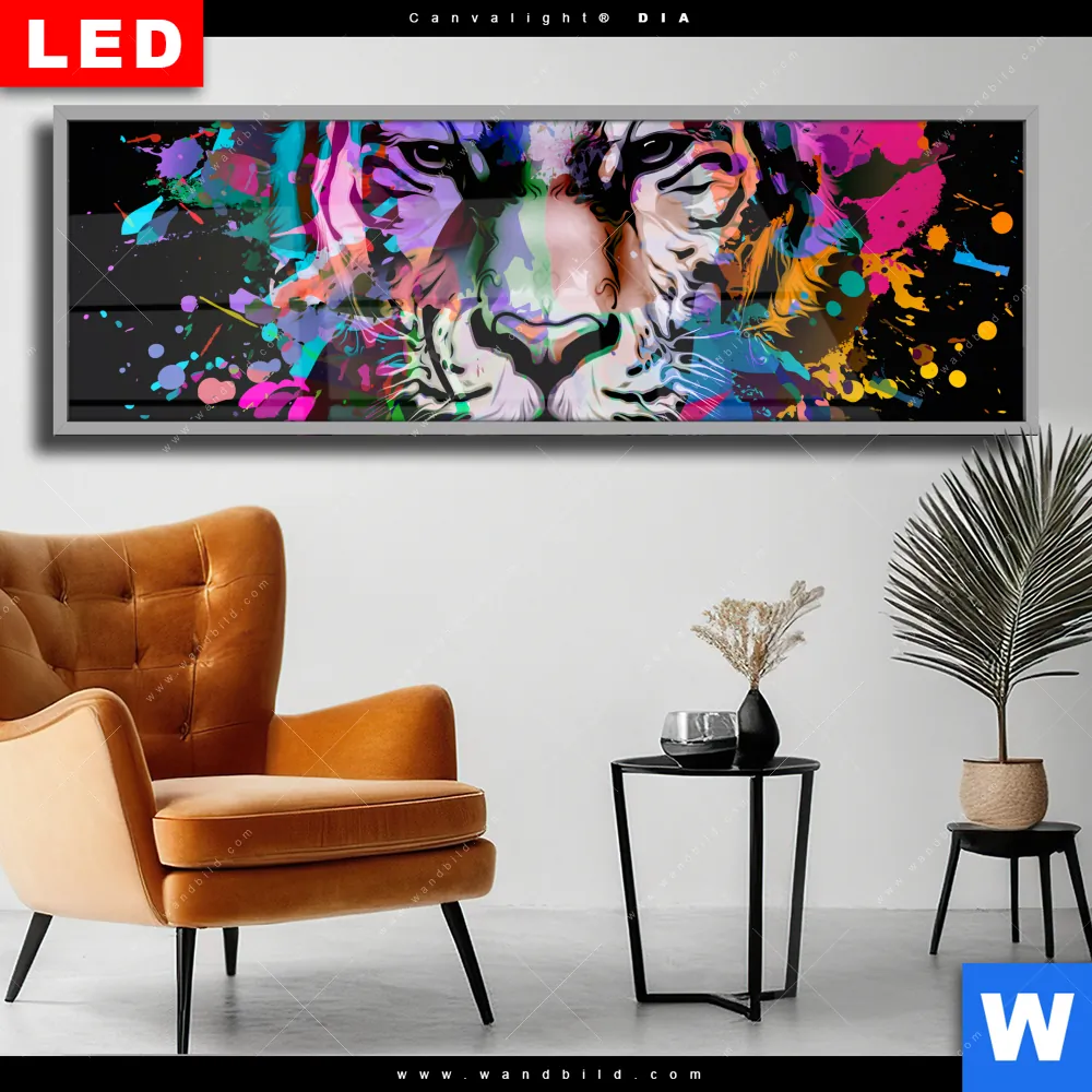 Wechselmotiv Acrylglas Canvalight® DIA | Bunter Tiger Schwarz | Panorama