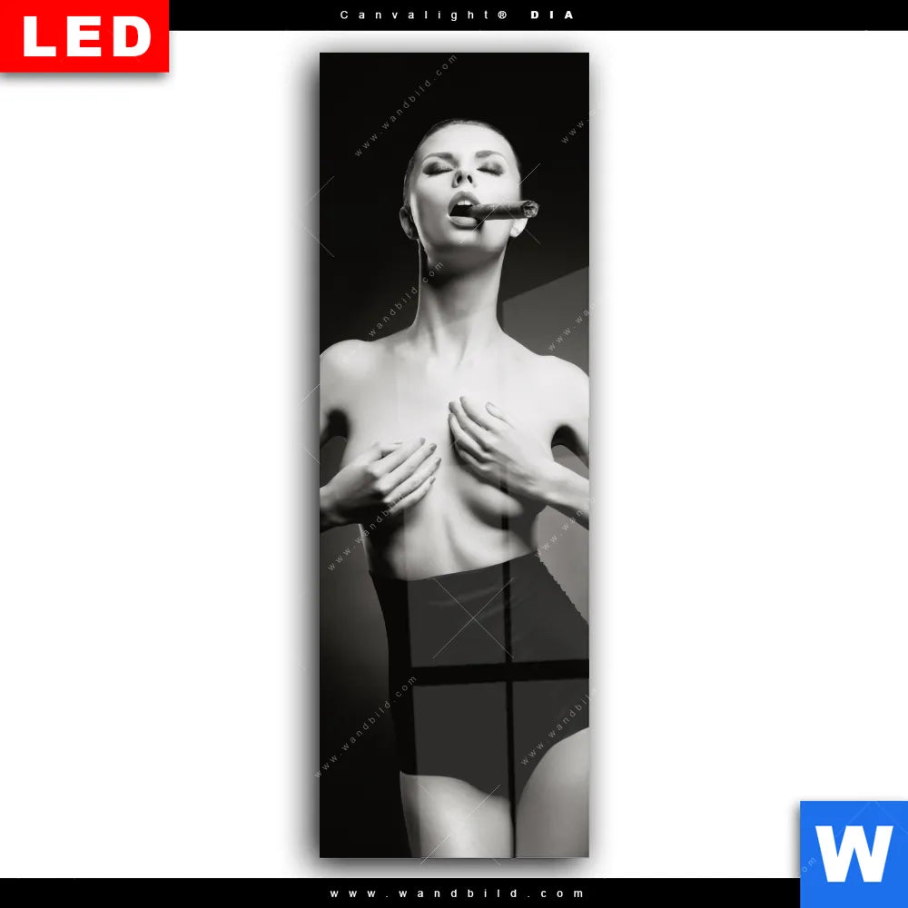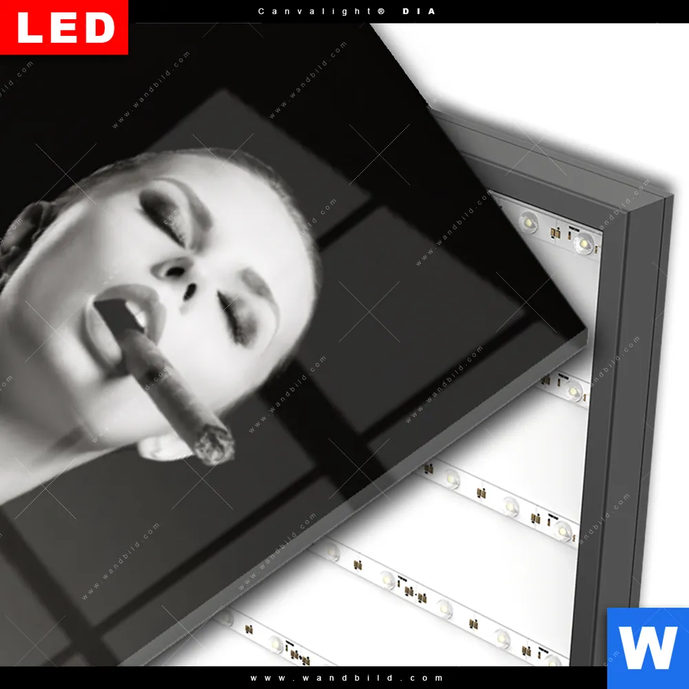 Wechselmotiv Acrylglas Canvalight® DIA | Dame mit Zigarre | Schmal