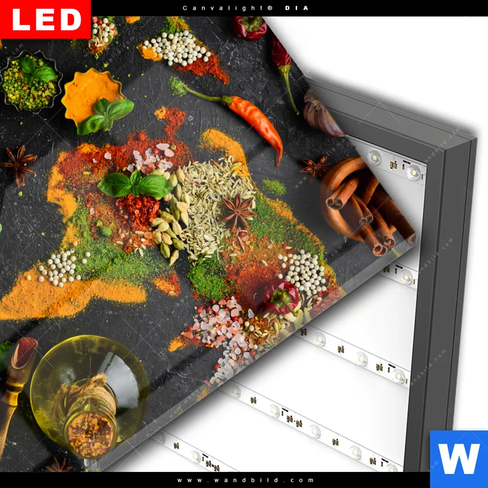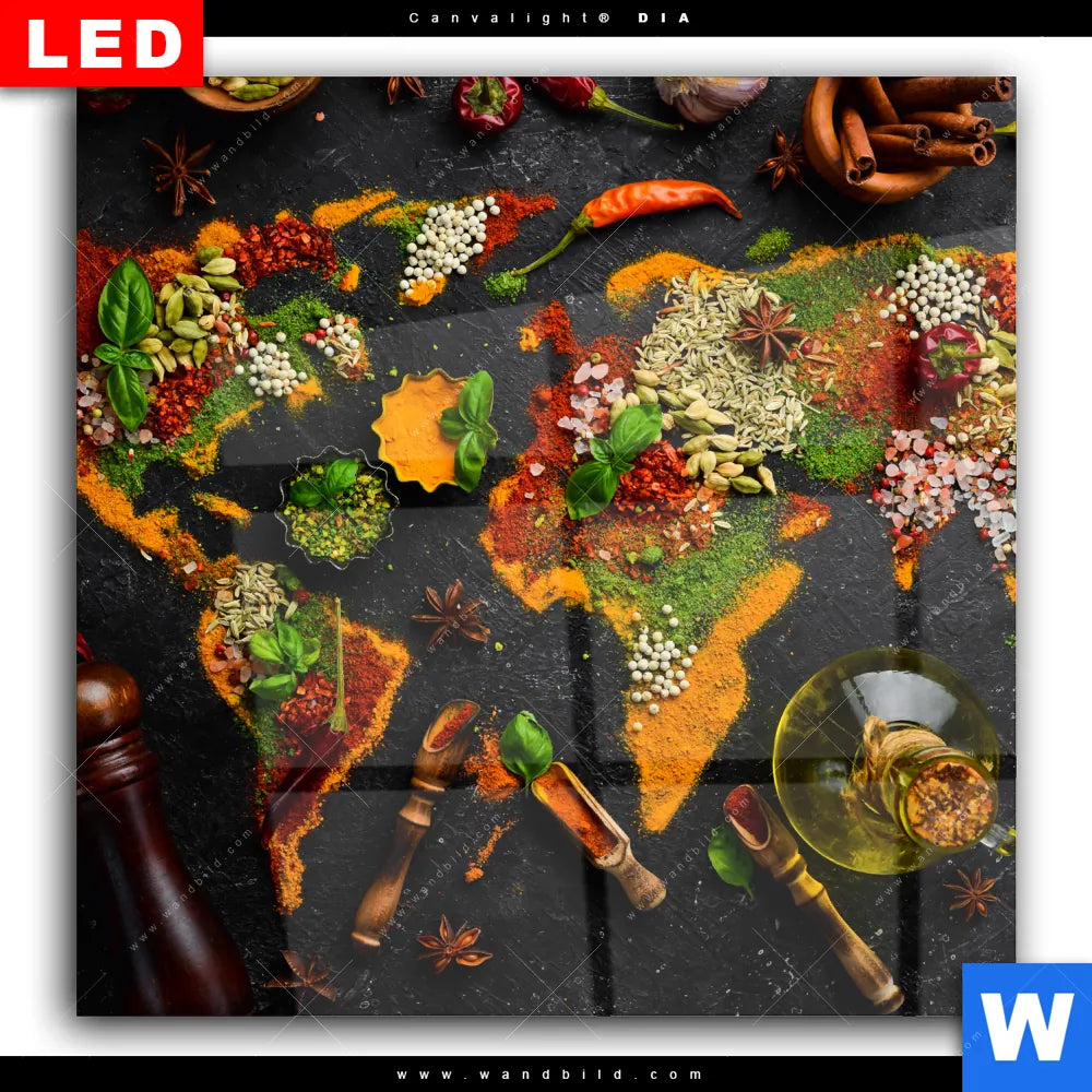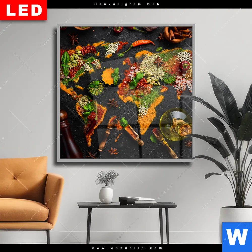 Wechselmotiv Acrylglas Canvalight® DIA | Die Weltkarte der Gewürze | Quadrat