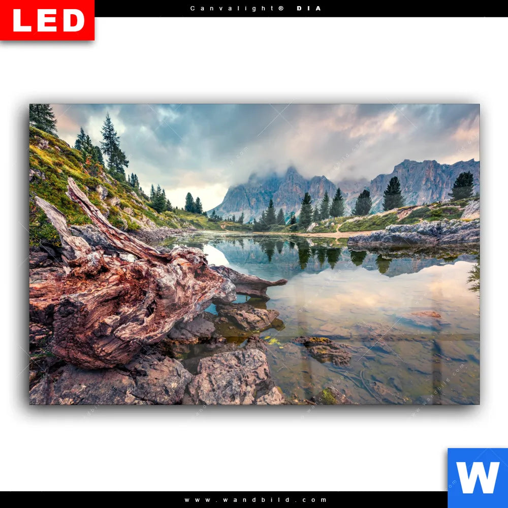 Wechselmotiv Acrylglas Canvalight® DIA | Dramatischer Morgenblick am See | Querformat