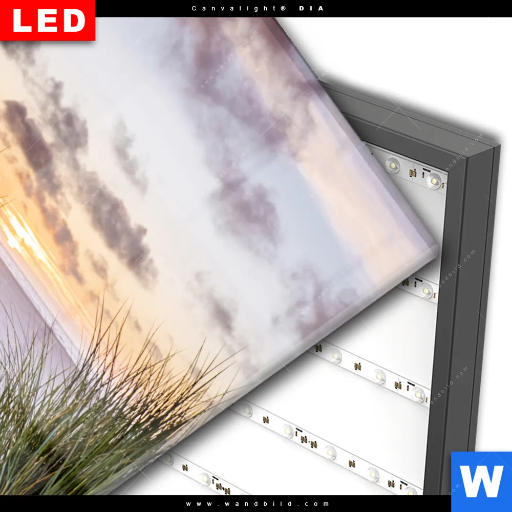 Wechselmotiv Acrylglas Canvalight® DIA | Dünen und Abendsonne | Hochformat