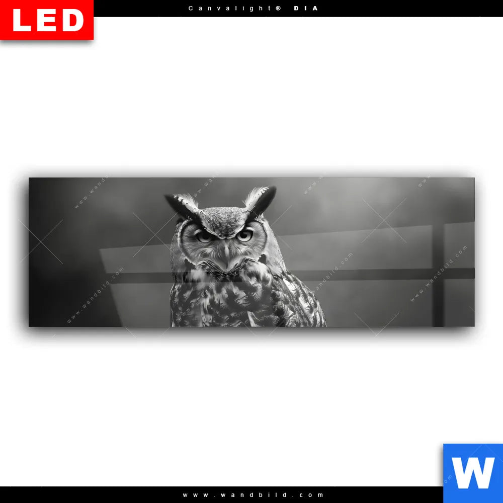 Wechselmotiv Acrylglas Canvalight® DIA | Düstere Eleganz der Eule | Panorama