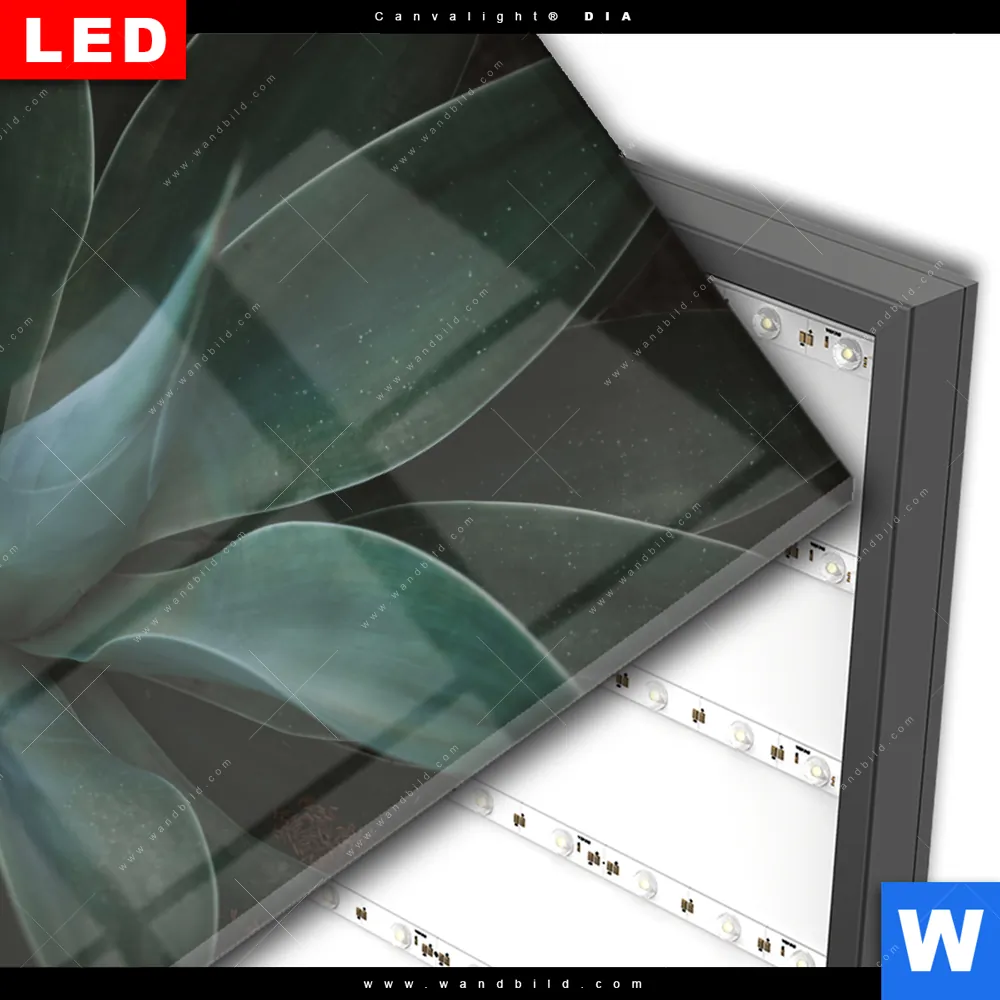 Wechselmotiv Acrylglas Canvalight® DIA | Dunkles Agavenblatt | Querformat