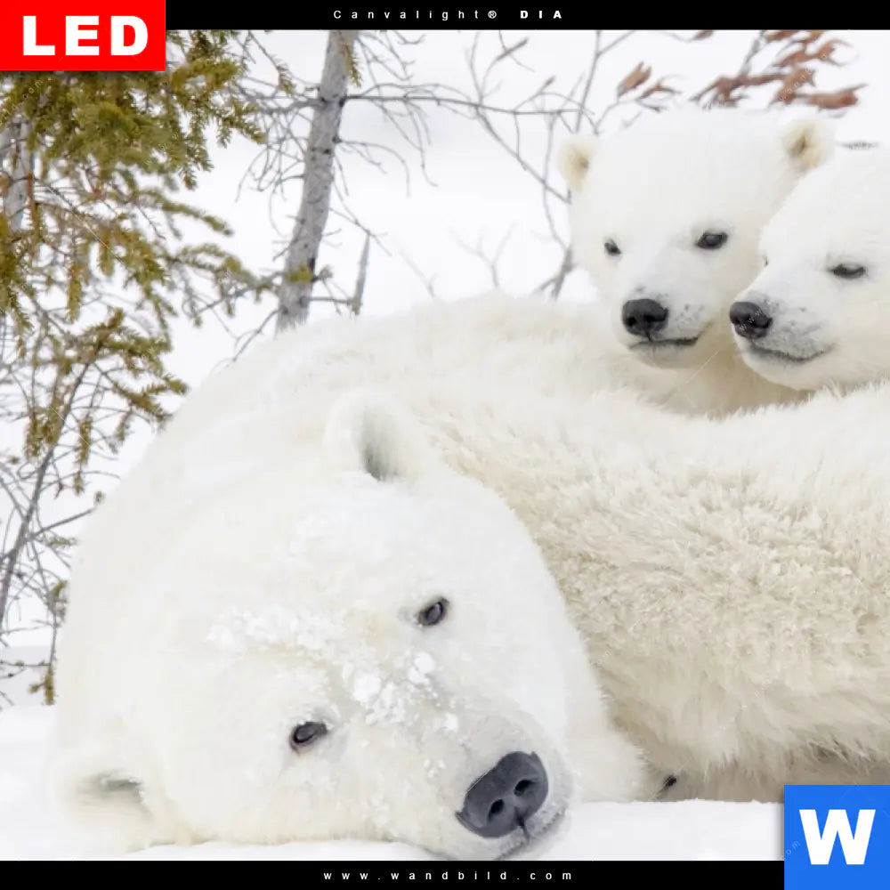 Wechselmotiv Acrylglas Canvalight® DIA | Eisbärenfamilie in winterlicher Landschaft | Panorama