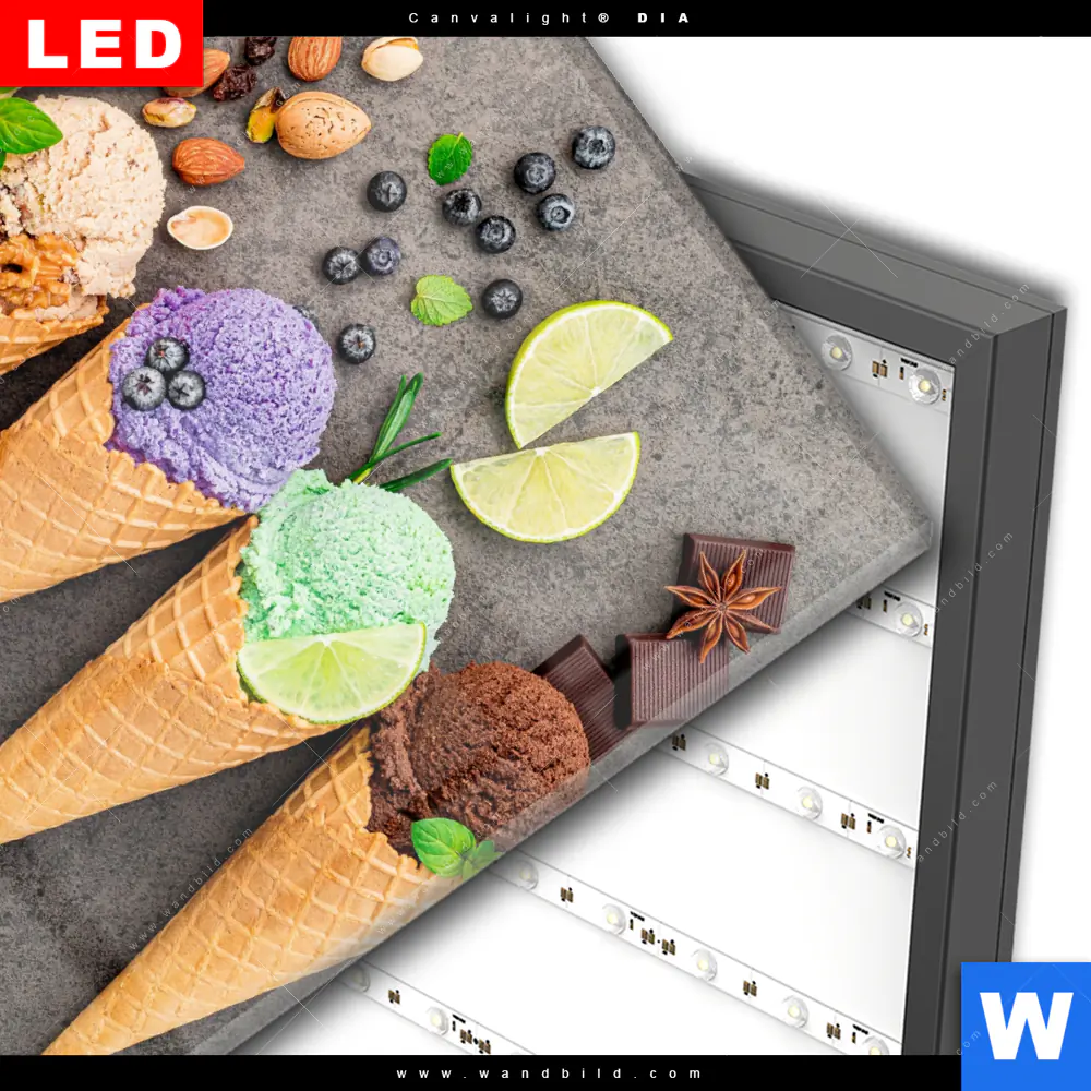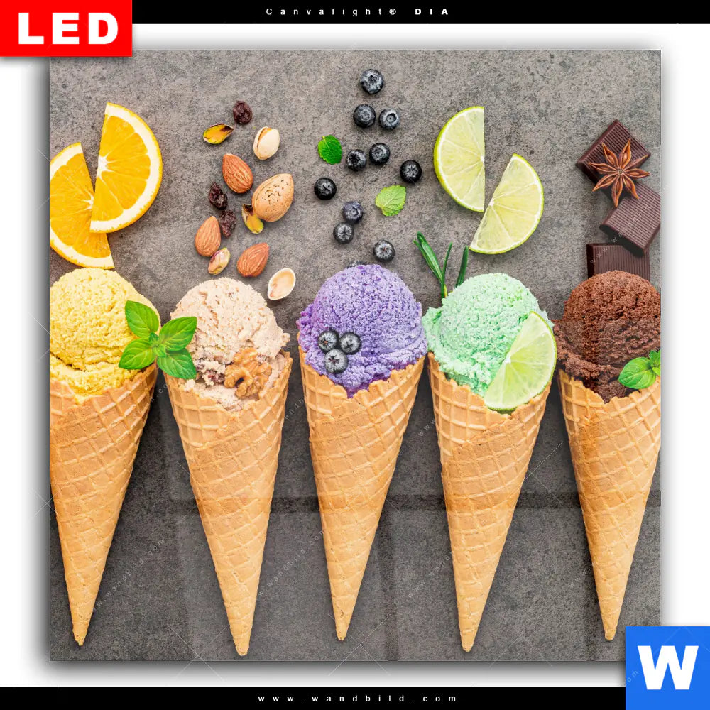 Wechselmotiv Acrylglas Canvalight® DIA | Eisgenuss in Perfektion | Quadrat