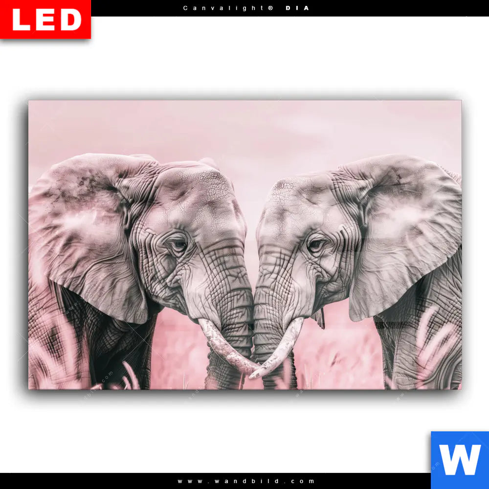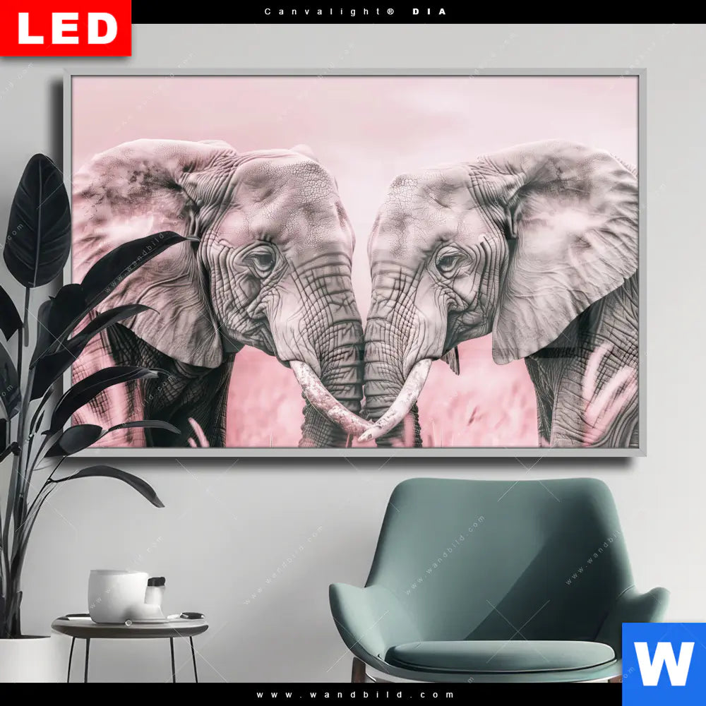 Wechselmotiv Acrylglas Canvalight® DIA | Elefanten - Harmonie in Pastell | Querformat