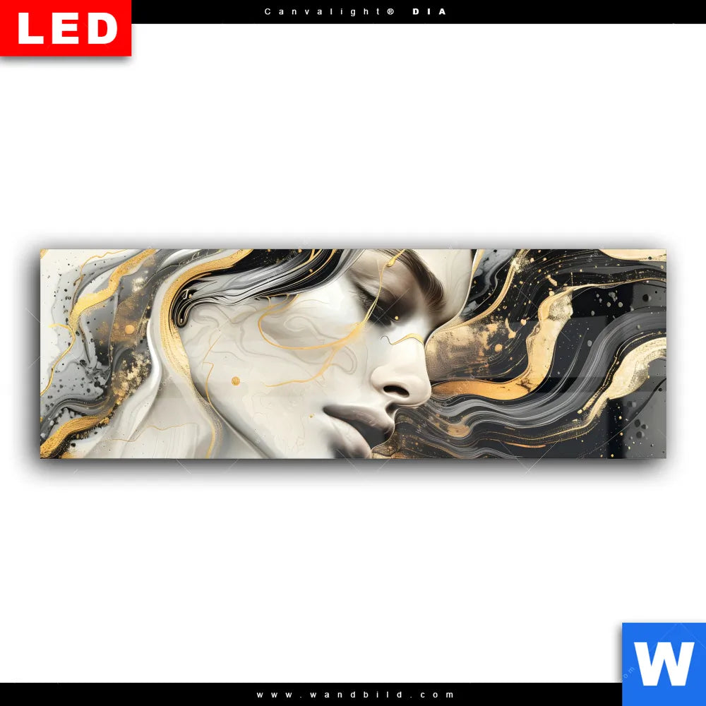 Wechselmotiv Acrylglas Canvalight® DIA | Elegantes gold-schwarzes Porträt | Panorama