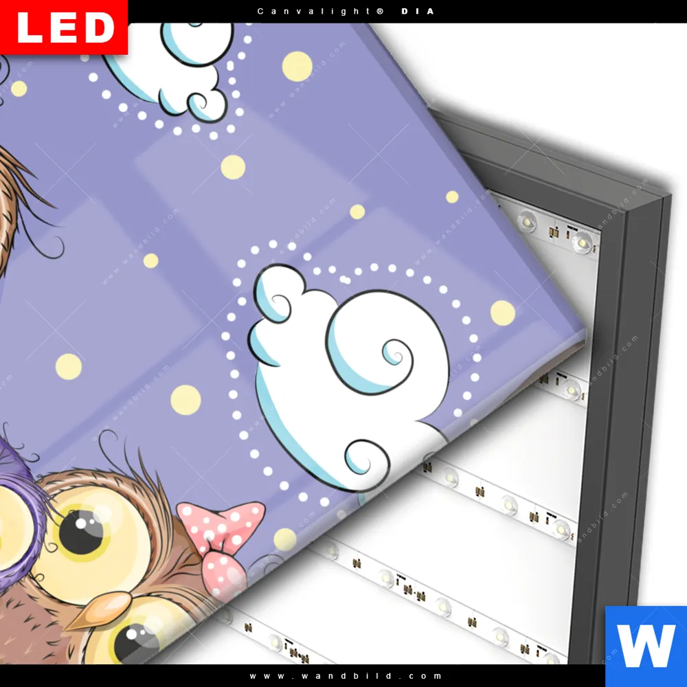 Wechselmotiv Acrylglas Canvalight® DIA | Eulenfamilie | Hochformat